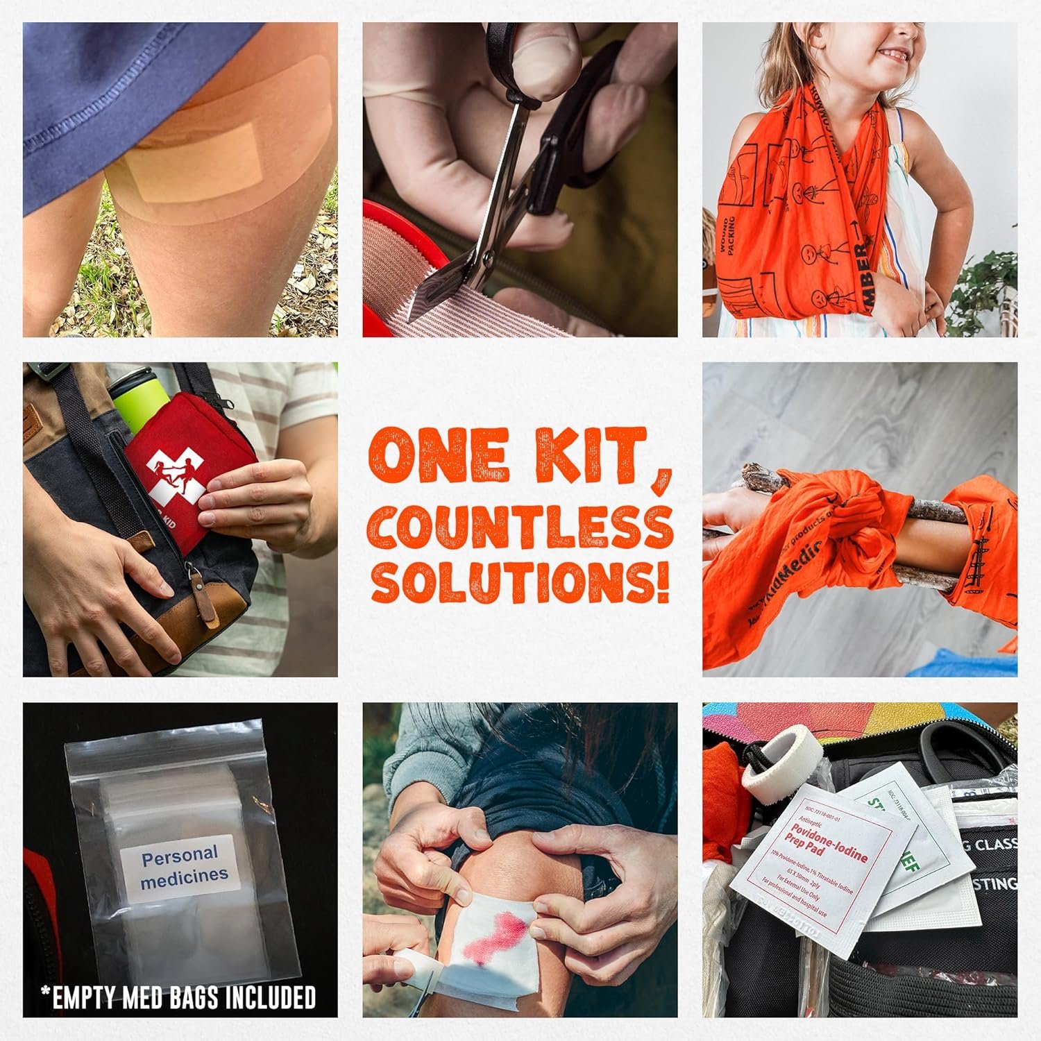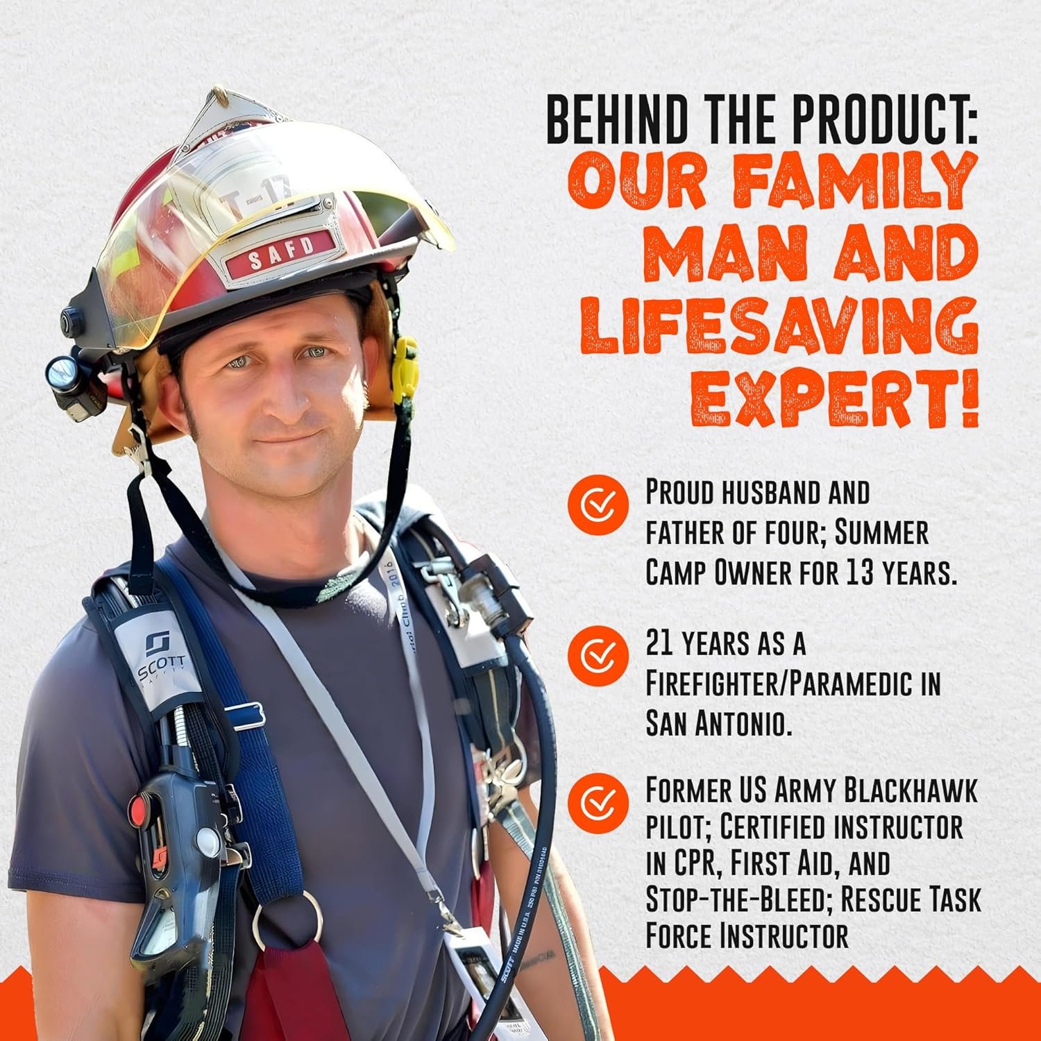 DESIGNED BY A PROFESSIONAL: Created by a 21-year Firefighter/Paramedic, former Army Blackhawk Pilot, and father of four, this kit is thoughtfully curated to ensure safety in various situations. With supplies for a tourniquet, splint, wound packing, sling, and more, this emergency first aid kit is far beyond a basic first aid pack.