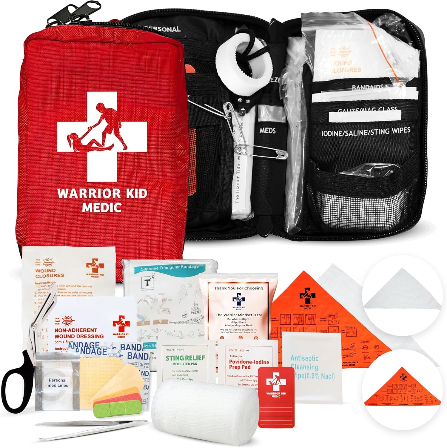 COMPREHENSIVE YET COMPACT: This first aid kit is designed for kids but built with emergency preparedness in mind. Unlike most children’s first aid kits that handle only minor injuries, the Warrior Kid Medic Kit is equipped to manage real emergencies—perfect for home, school, camping, sports, and outdoor adventures.