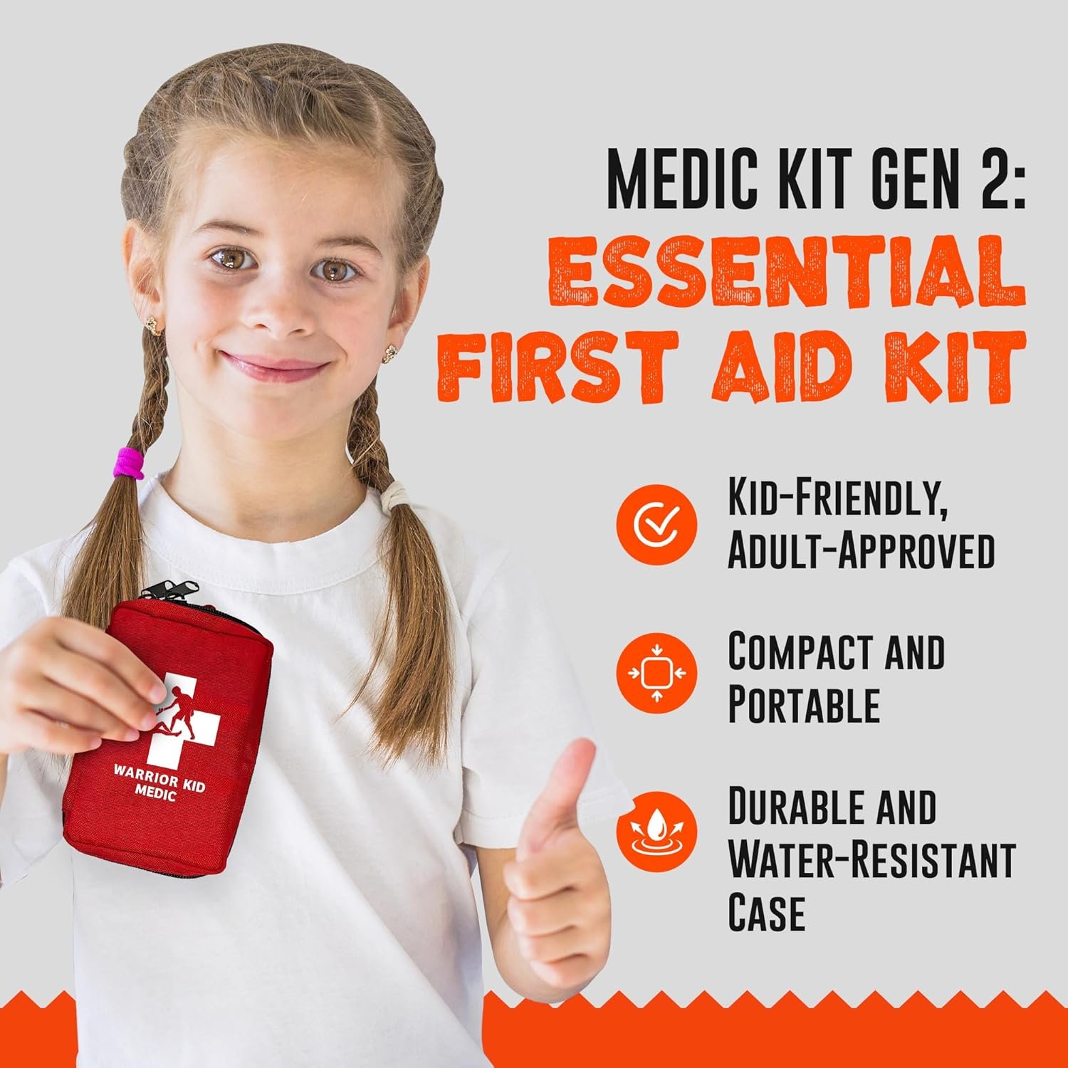 DURABLE & EXPANDABLE: Unlike other kids’ first aid kits, the Warrior Kid Medic Kit allows room for customizable medical supplies as skills grow. It’s a first aid kit for daycare, travel, hiking, and vehicles, making it a must-have for families on the go.