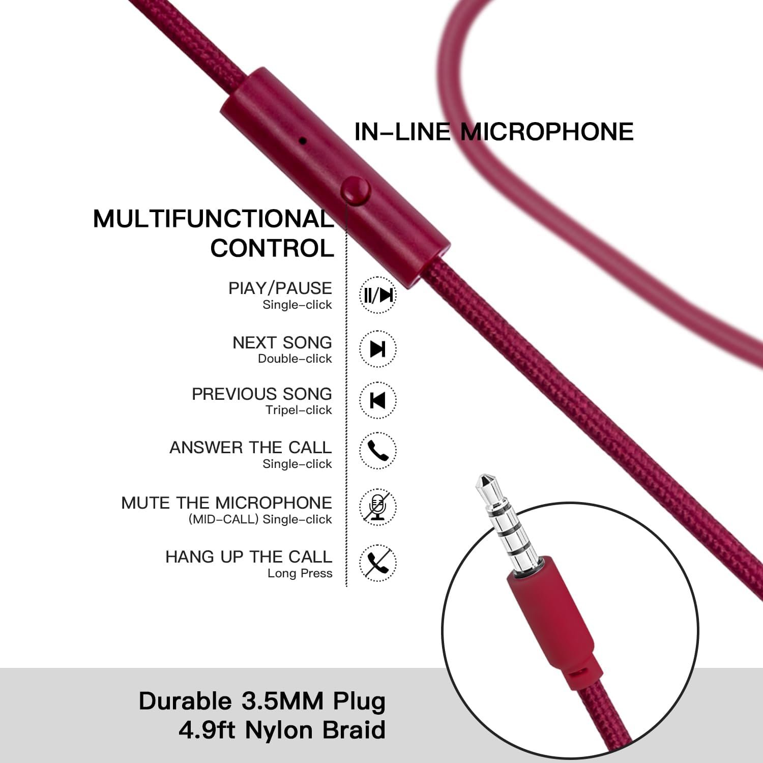 【Convenient】Our headphones are equipped with microphoe and in-line control feature. This allows for easy control of answer/mute, play/pause, and track skipping directly from the cable, eliminating the need to fumble with devices or take them out of pockets or bags. This aspect ensures convenience and ensures that you can control your audio experience with ease.Furthermore, the microphone allows for hands-free communication. Whether it’s making calls or chatting with friends while gaming, the microphone ensures that you can stay connected without the hassle of holding a separate device.