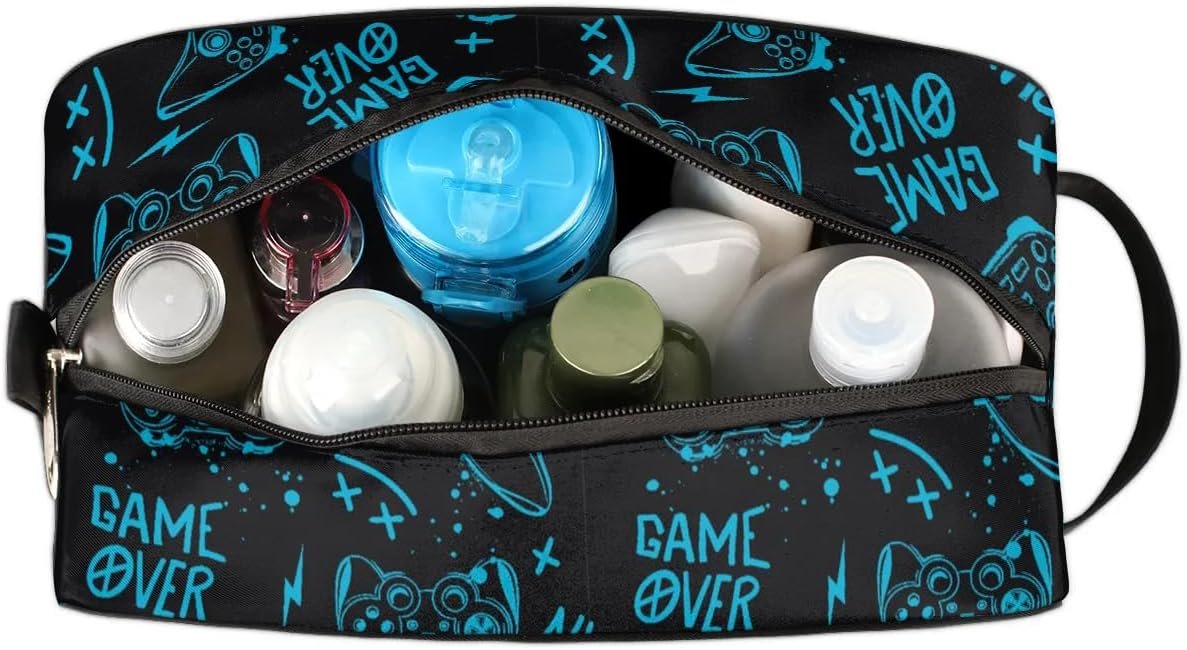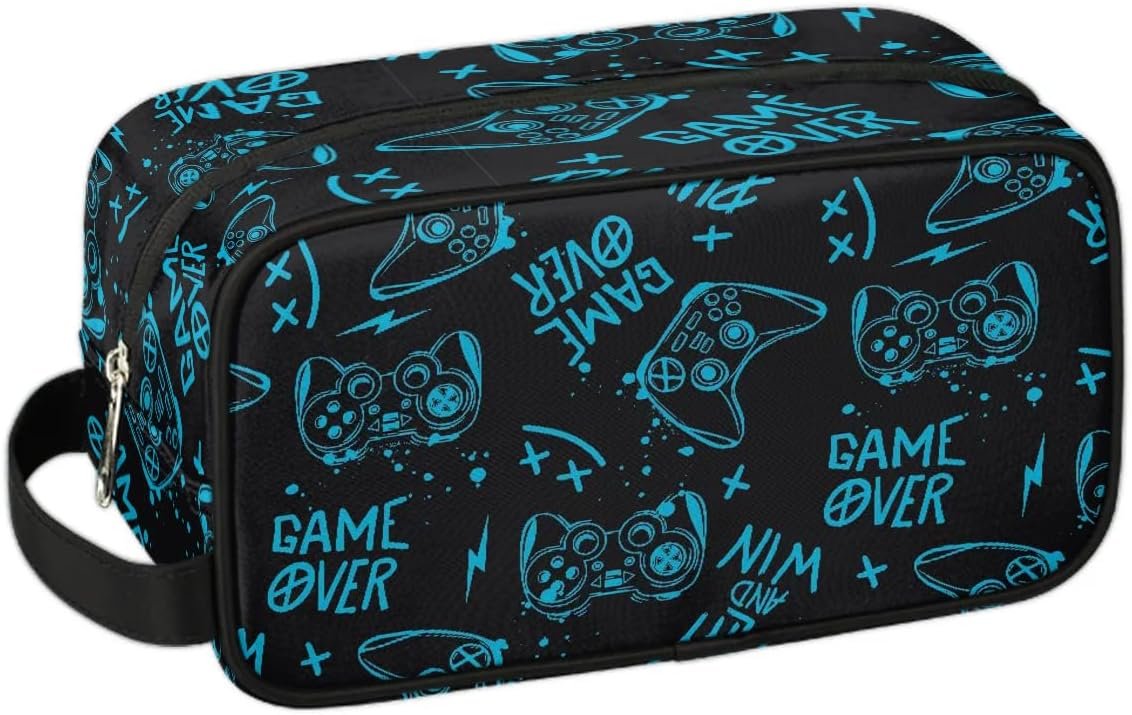 Kids Travel Toiletry Bag Waterproof Hanging Dopp Kit Case for Little Young Boys, Gamer Gamepad Teens Wash Bag for Toiletries Accessories