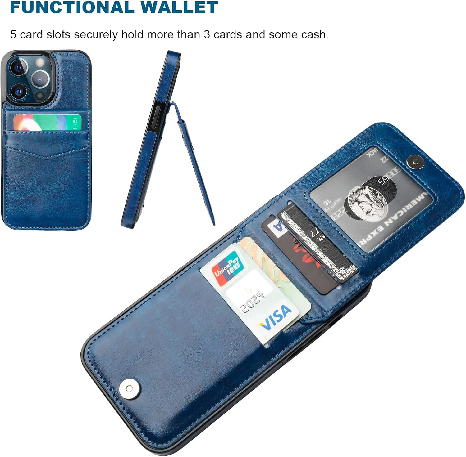 KIHUWEY Compatible with iPhone 13 Pro Case Wallet with Credit Card Holder, Premium Leather Magnetic Clasp Kickstand Heavy Duty Protective Cover for iPhone 13 Pro 6.1 inch(Blue)