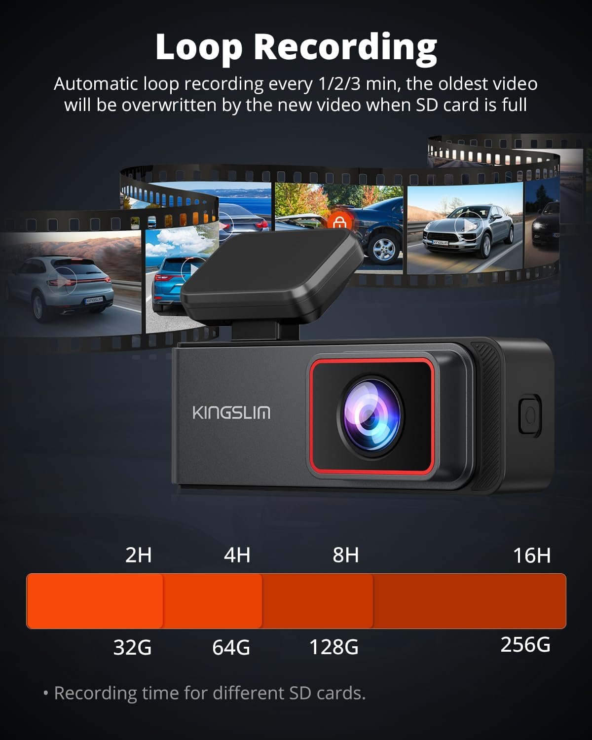 Kingslim E4 4K Dash Cam Front and Rear, WiFi Front 4K Rear 1080P Dual Dash Camera for Cars, Mini Dashcam with APP Control, Night Vision, Parking Mode