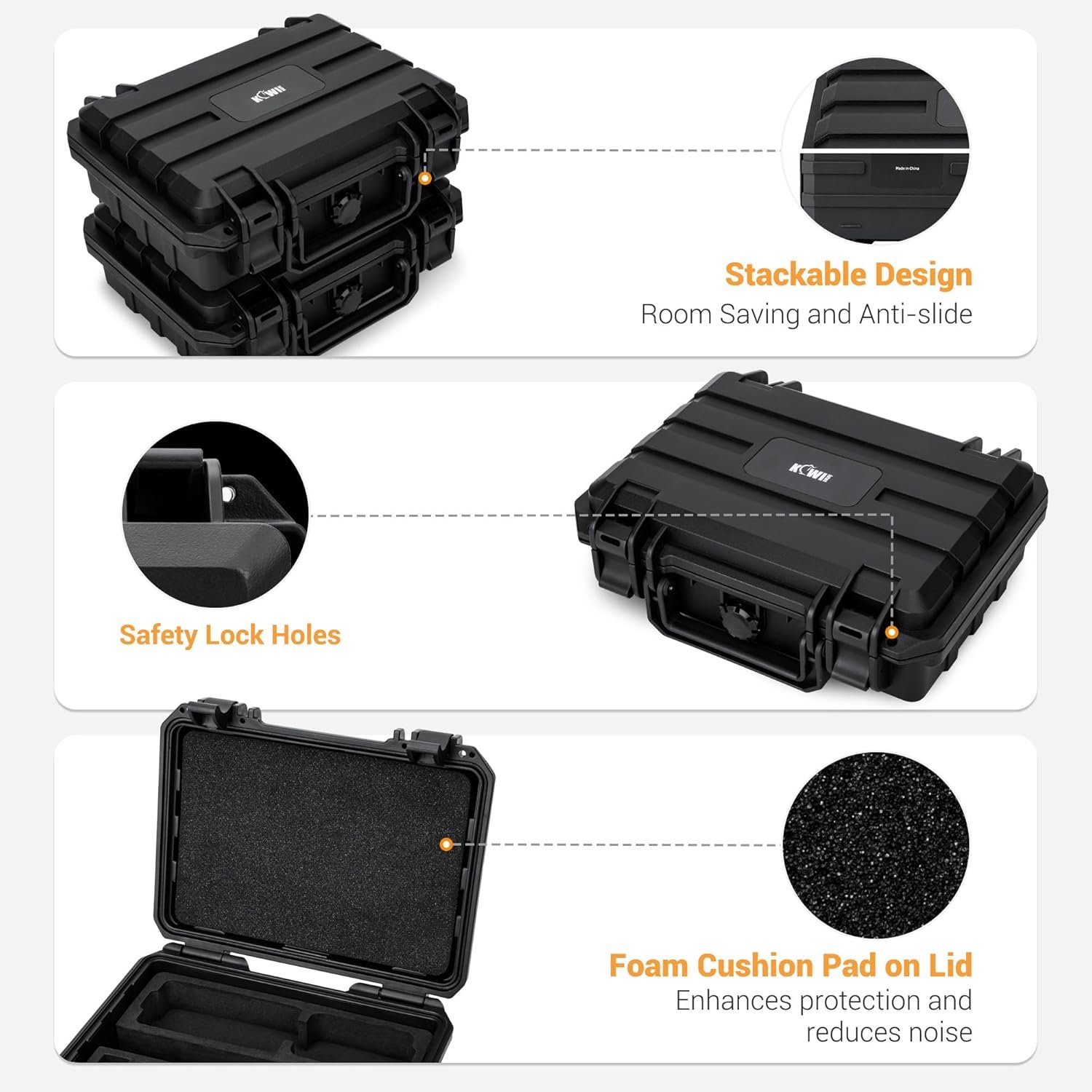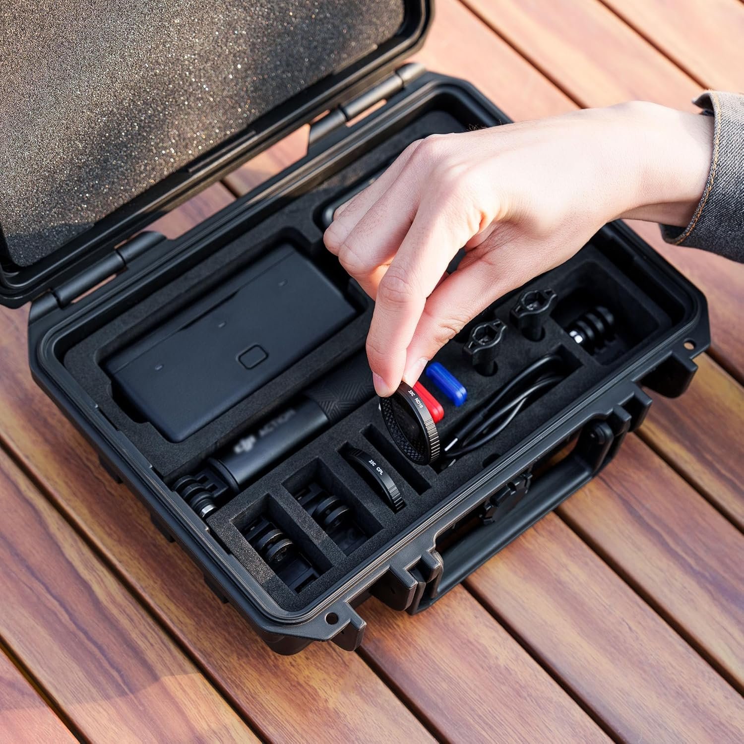 KIWIFOTOS Hard Case is custom-fit for DJI. OSMO Action 5 Pro / 4 / 3 Adventure Combo and accessories. with Independent slots holding the camera neatly in place, without contacting or scratching each other. offering the utmost protection. Case only.