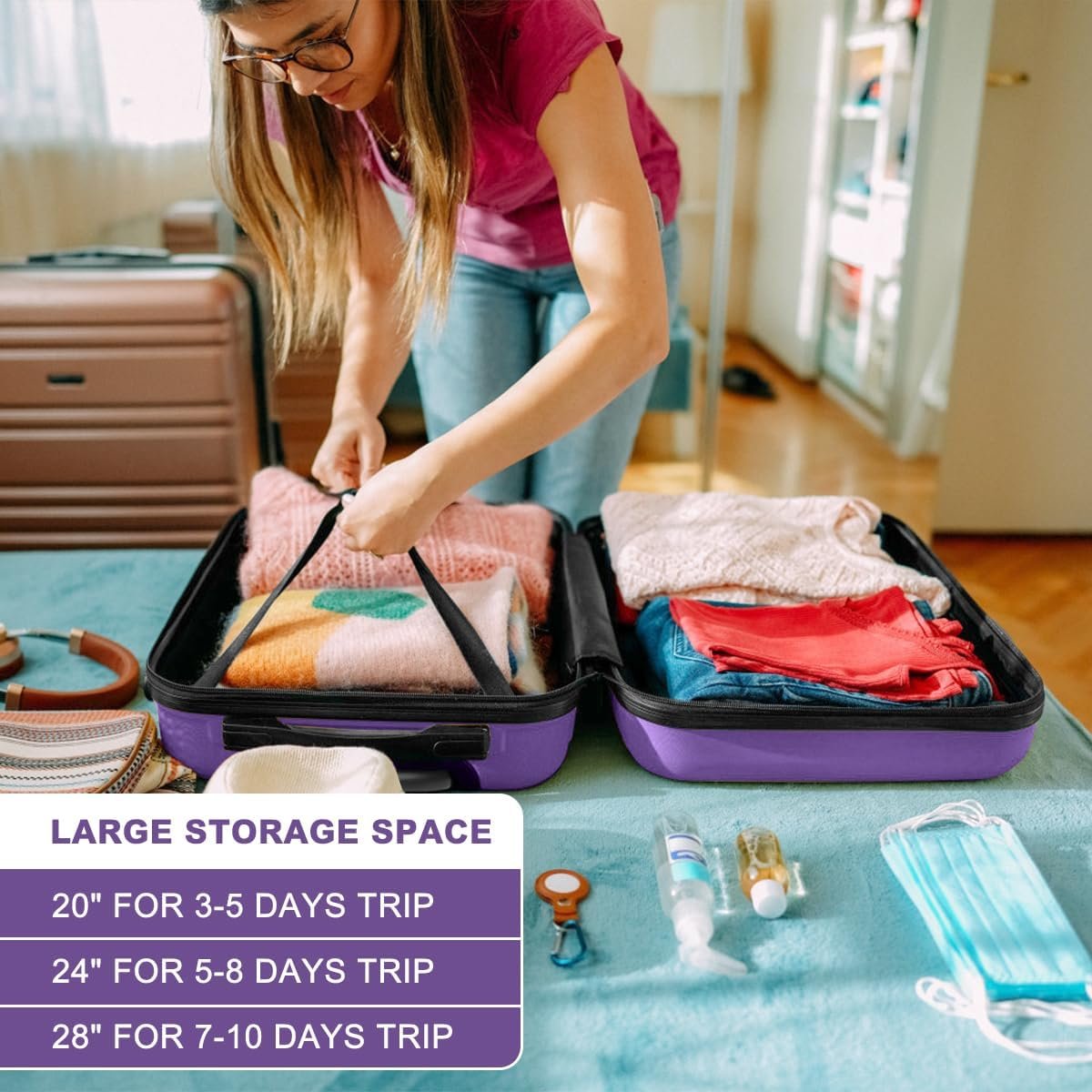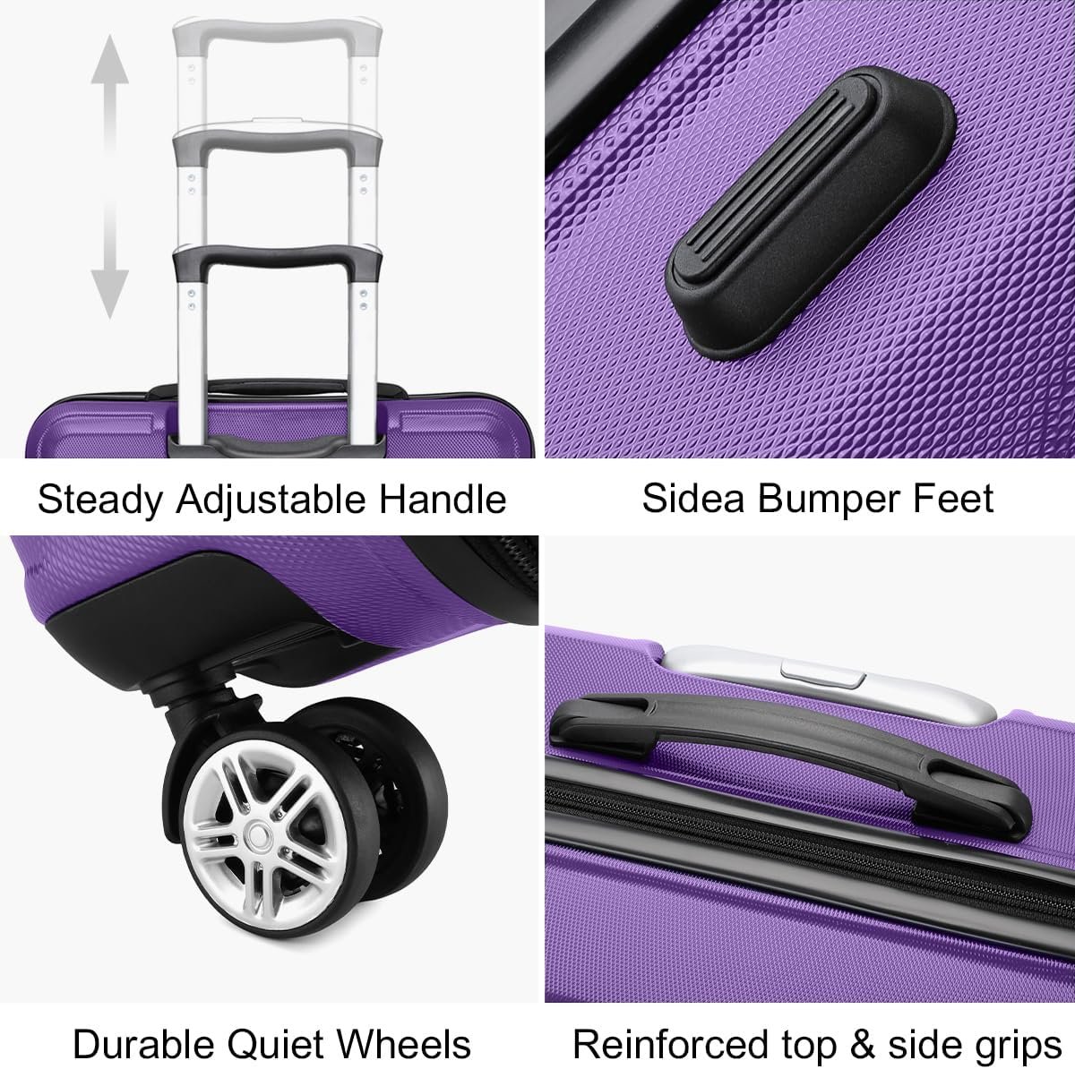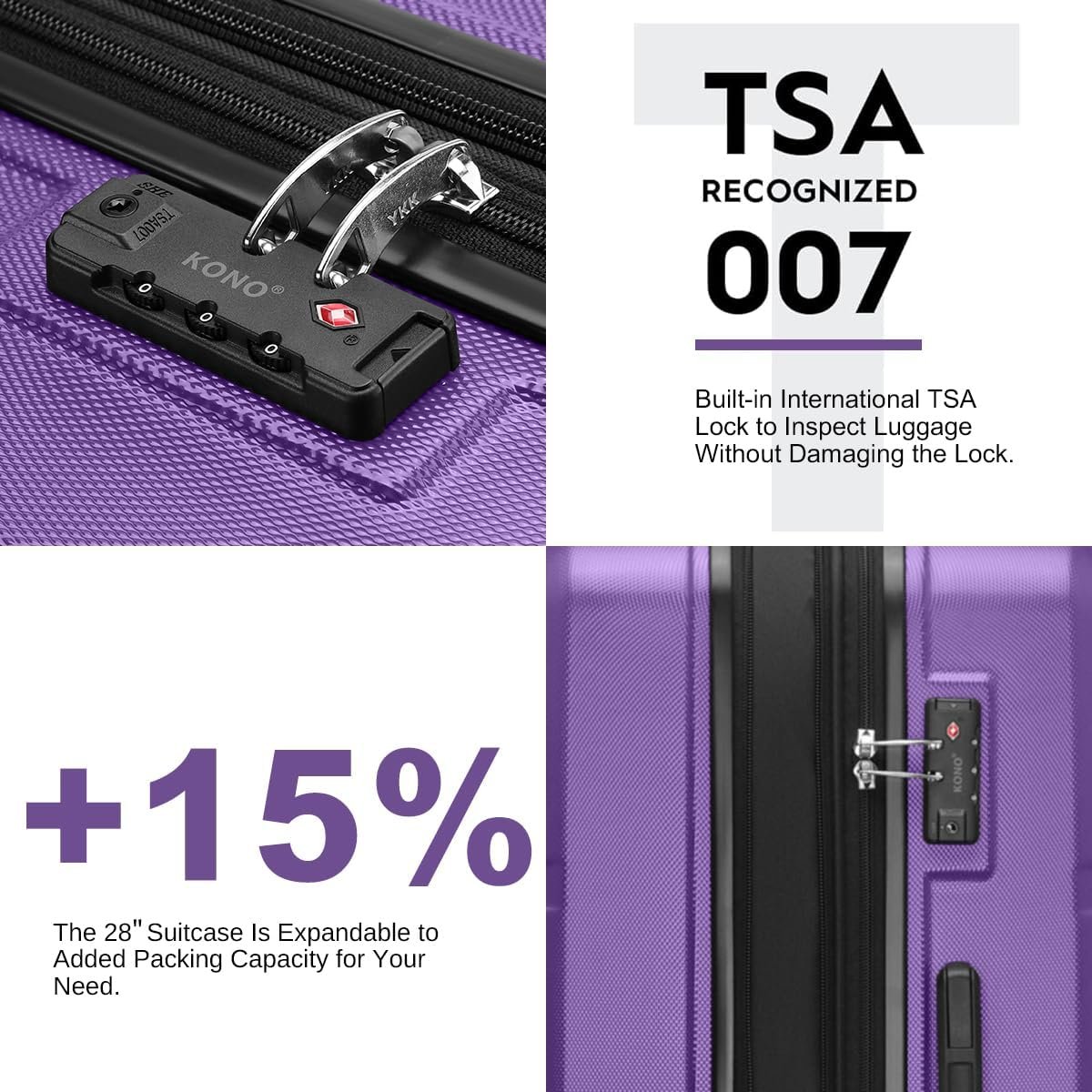 Kono 4 Piece Luggage Sets Expandable(only 28″) Lightweight with Spinner Wheels TSA Lock Hardside Travel Rolling Suitcases 20in 24in 28in Carry on and 12in Mini Cosmetic Case Purple