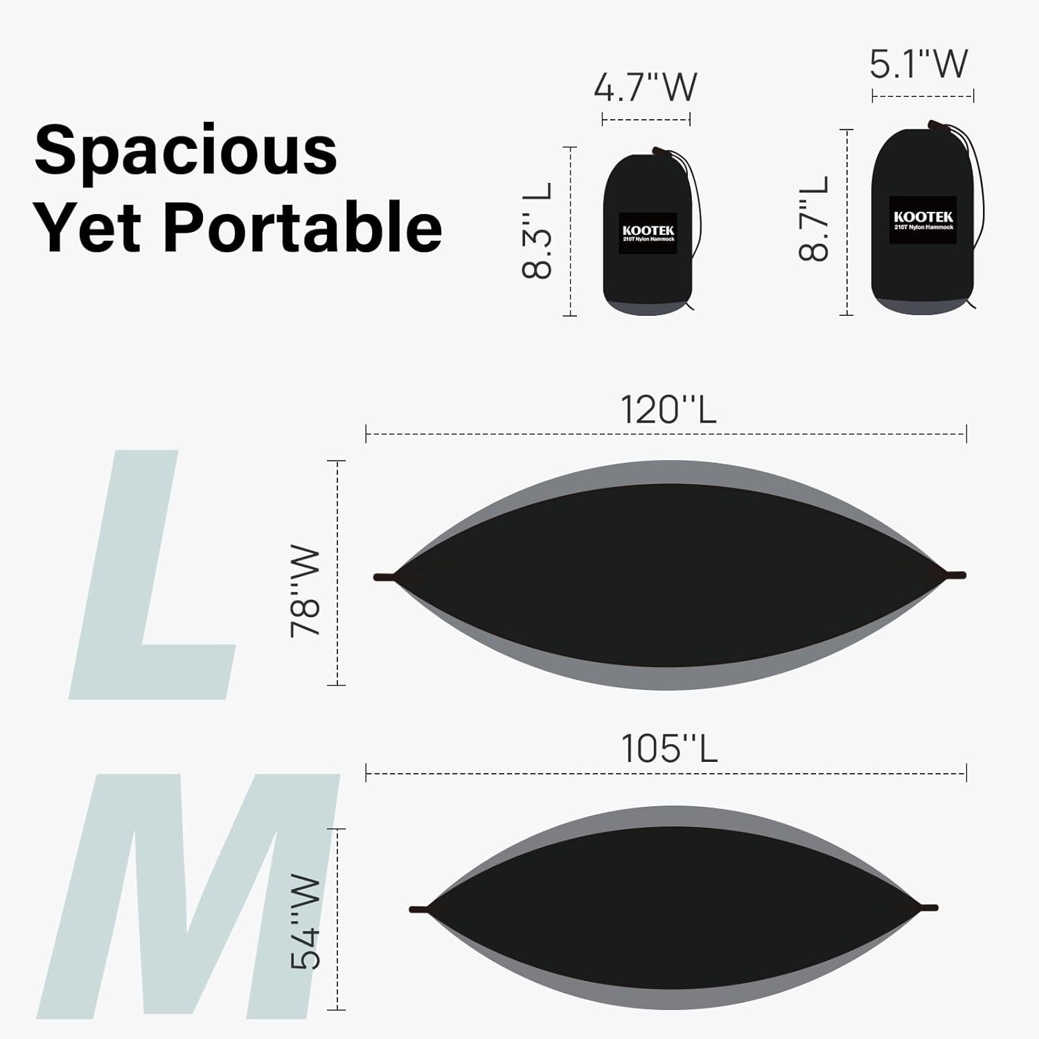 Kootek Camping Hammock, Camping Essentials, Lightweight Portable Double & Single Hammock with Tree Straps, Camping Gear for Outside Hiking Camping Beach Backpack Travel