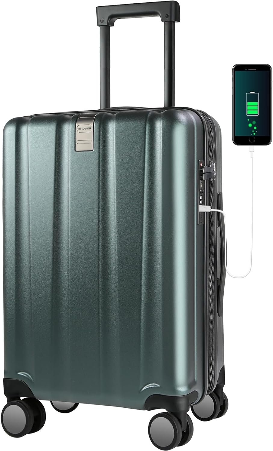 KROSER Hardside Expandable Carry On Luggage with Spinner Wheels & Built-in TSA Lock, Durable Suitcase Rolling Luggage with USB Port, Carry-On 20-Inch, Dark Green