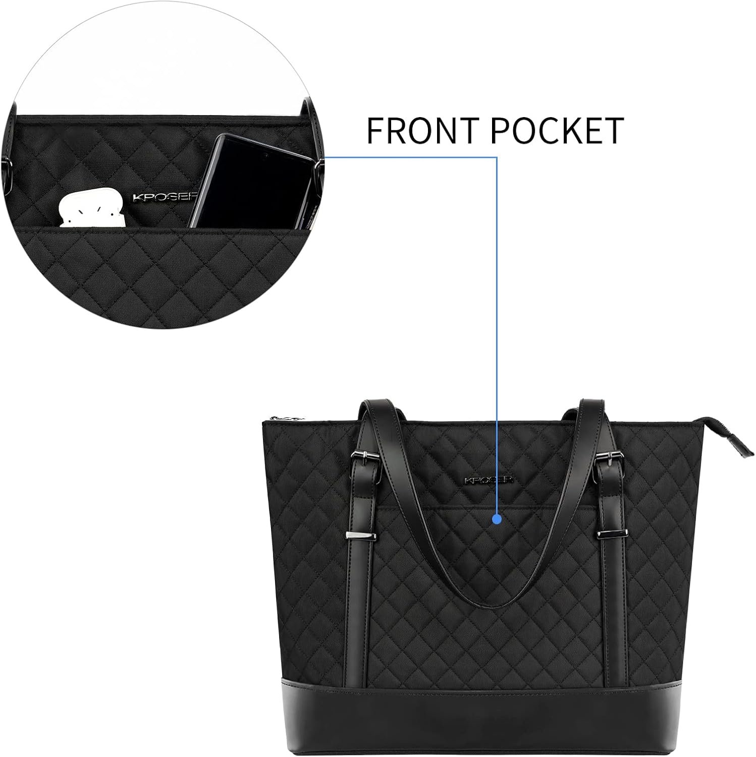 KROSER Laptop Tote Bag 15.6 Inch with USB Port, Large Work Tote Bag Computer Shoulder Bag for Women, Laptop Case for Office Business Travel(Quilted)