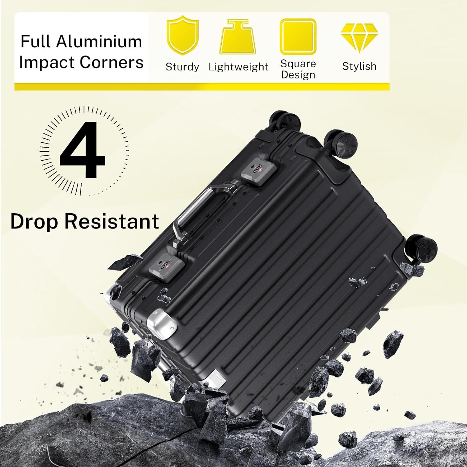 【Hardside Material Construction Travel Suitcase】Luggage built with a hard-shell design offers excellent scratch resistance, while reinforced aluminum corners provide added durability for demanding travel. This sturdy suitcase ensures your belongings stay protected, even during rough handling