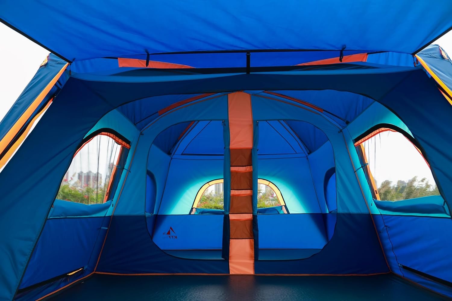 KTT Extra Large Tent 12 Person,2 Bay-Windows,Family Cabin Tents,14’Lx10’Wx6.58’H,2 Rooms and 3 Doors 3 Windows with Mesh,Waterproof,Straight Wall,Big Tent for Outdoor,Picnic,Camping,Gathering