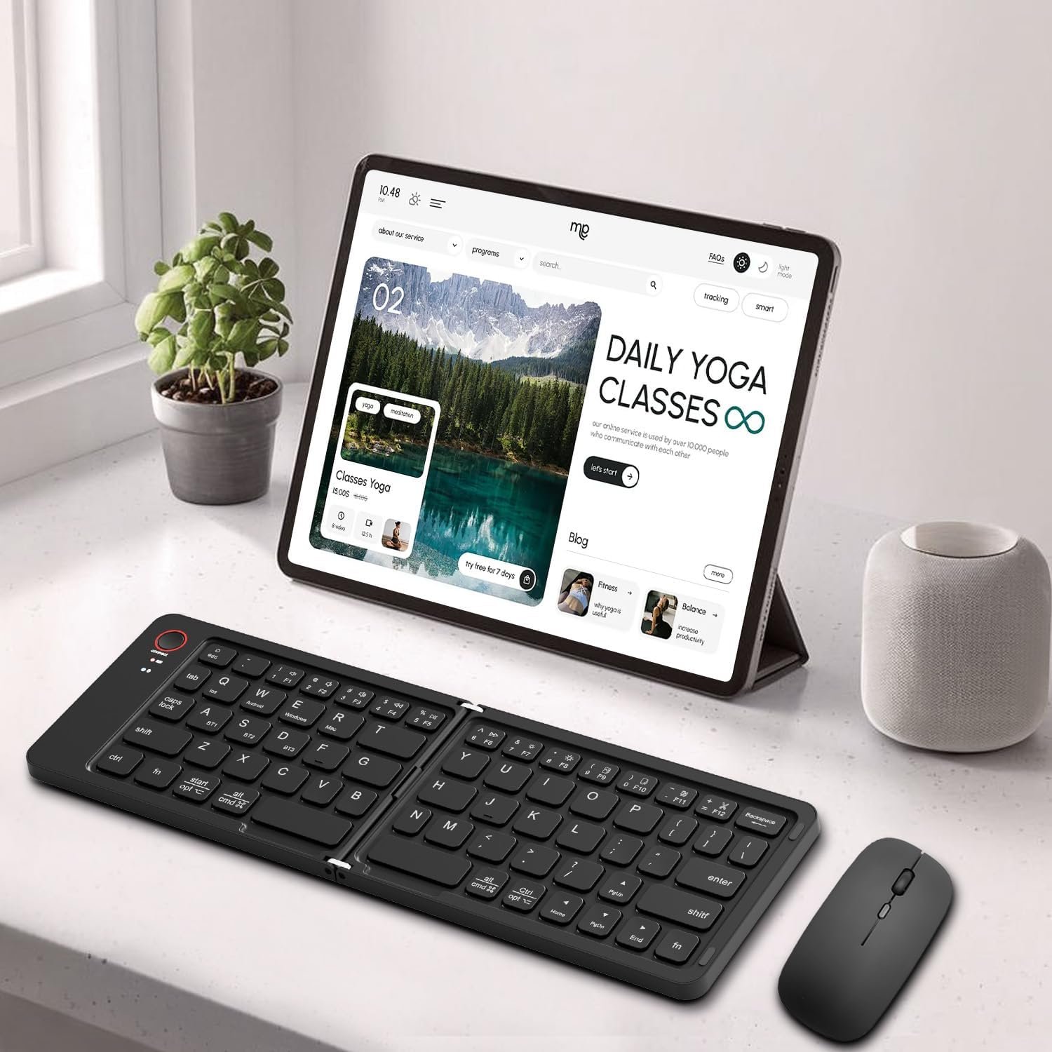 【Wide Compatibility】Foldable keyboard and mouse combo works perfect with all iOS,Mac OS, iPad OS,Windows, Android,Linux system devices.