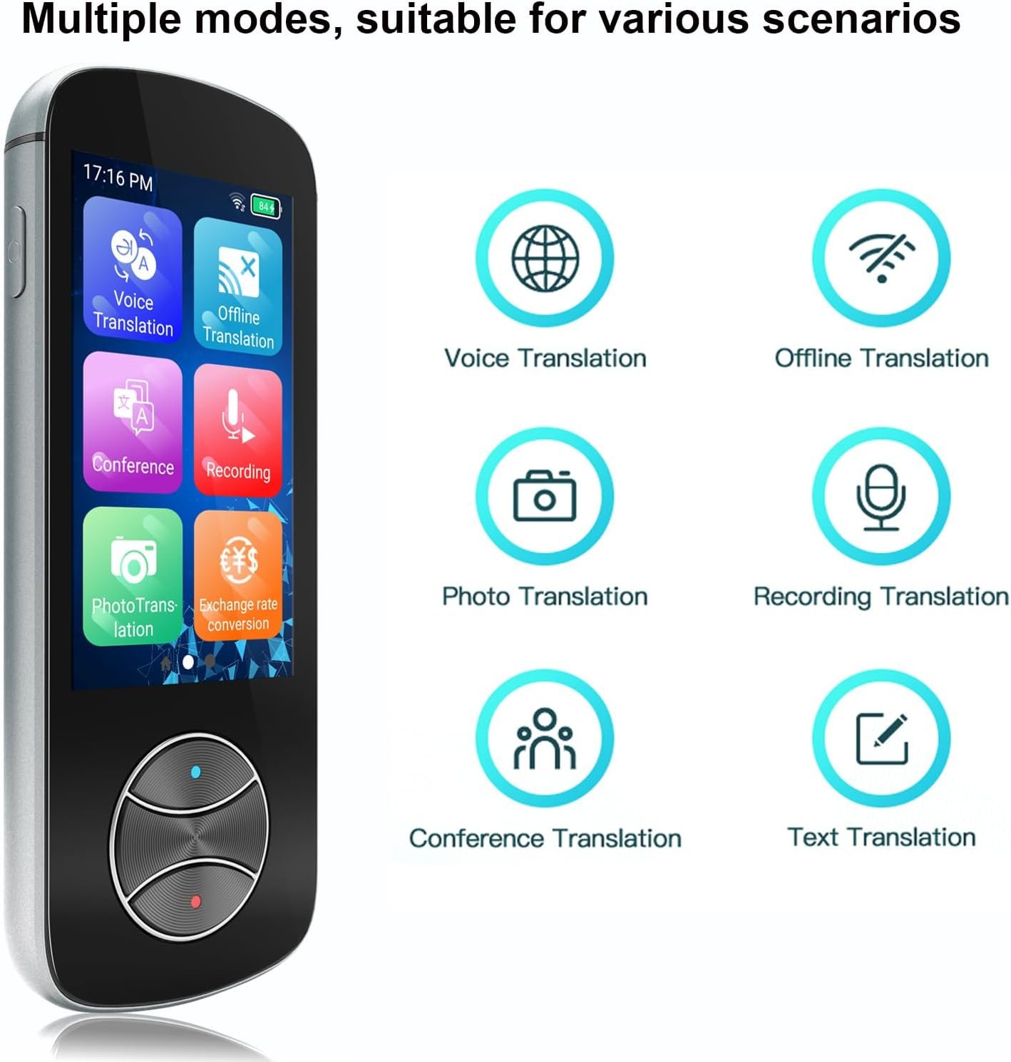 Friendly Design: Pocket language translator is small and portable, suitable for travel, study, business meetings, etc. The 3″ IPS high-definition touch screen and simple UI interface make it easy to use whether you are a novice or an experienced user.