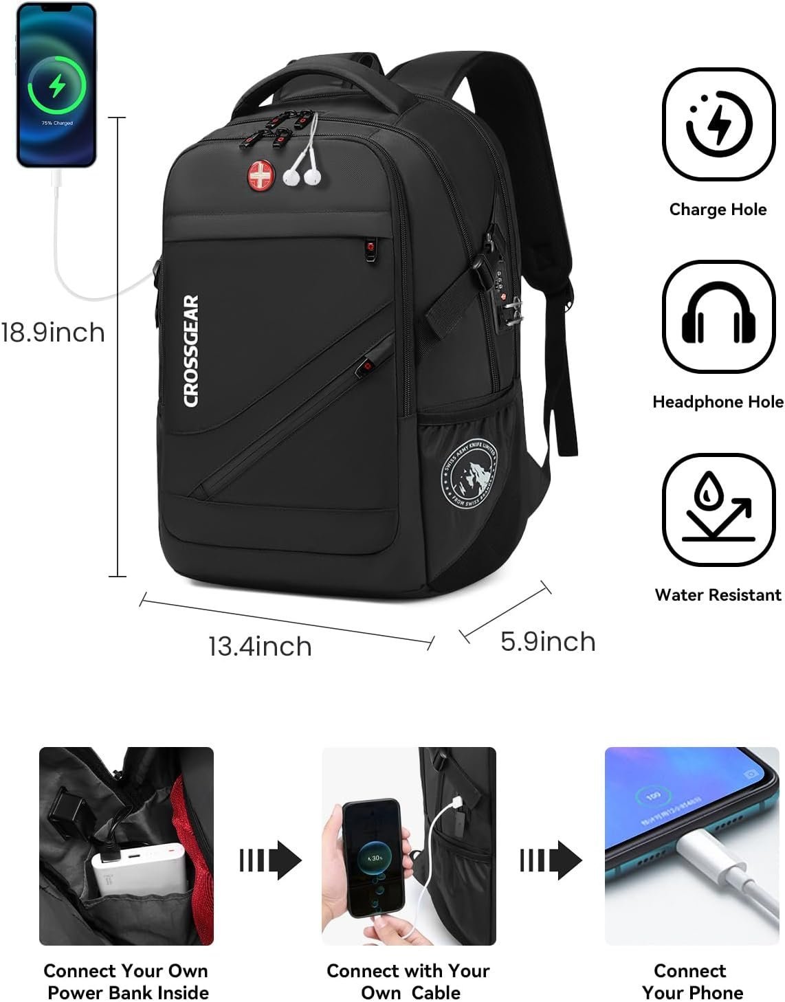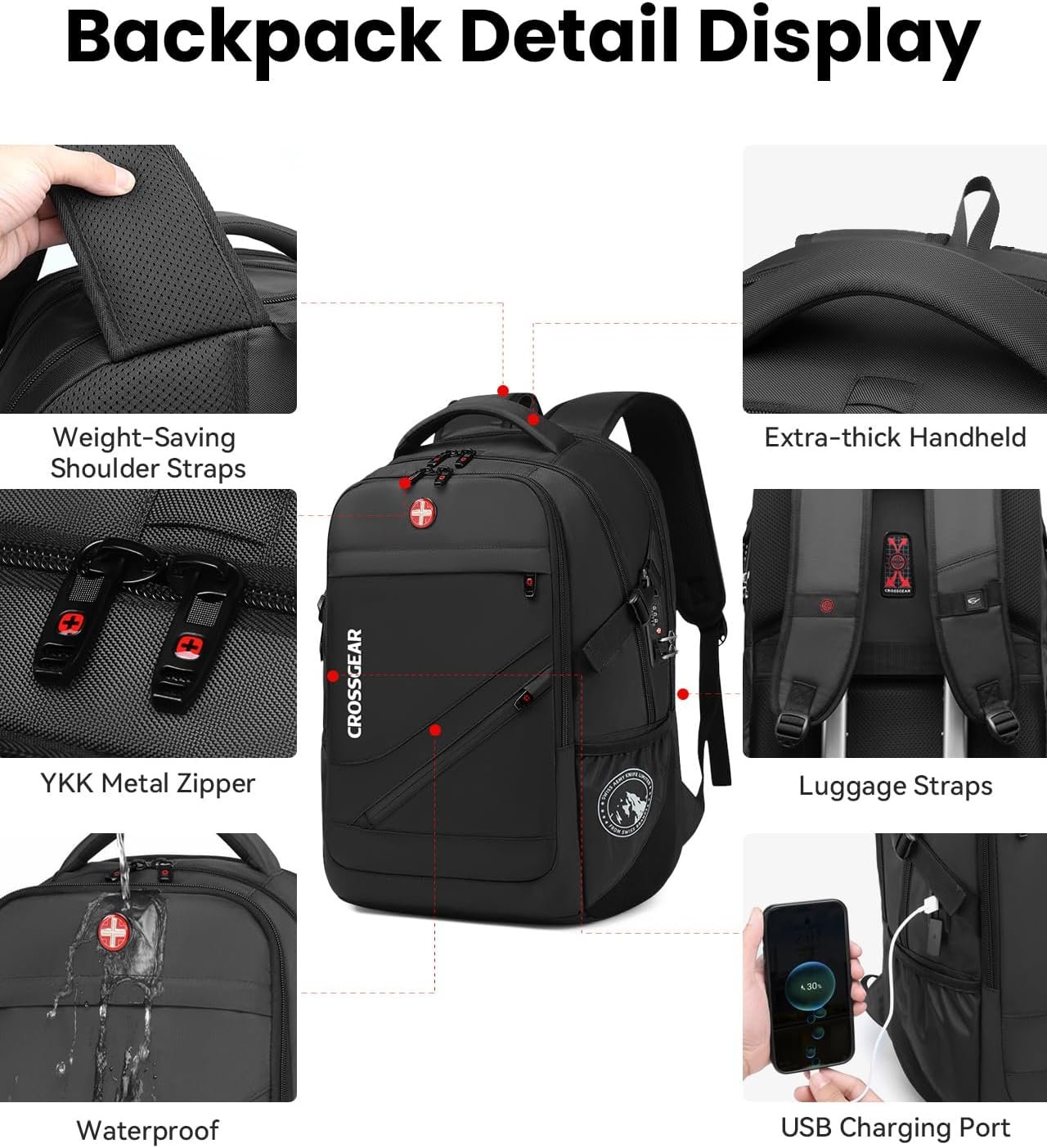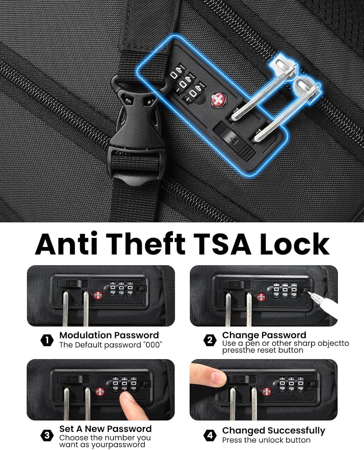 Luggage Strap & Combination Lock: Large travel backpacks featuring the luggage belt on the back, business traveller could fit carry on backpack right on the luggage suitcase for easier carrying which frees your hands. The laptop compartment is designed with a combination lock to effectively protect valuables from loss, initial password 000. A hidden anti theft pocket on the back protect your wallet, passport and valuable items from thieves. Work travel bag is a must-have for business traveling.