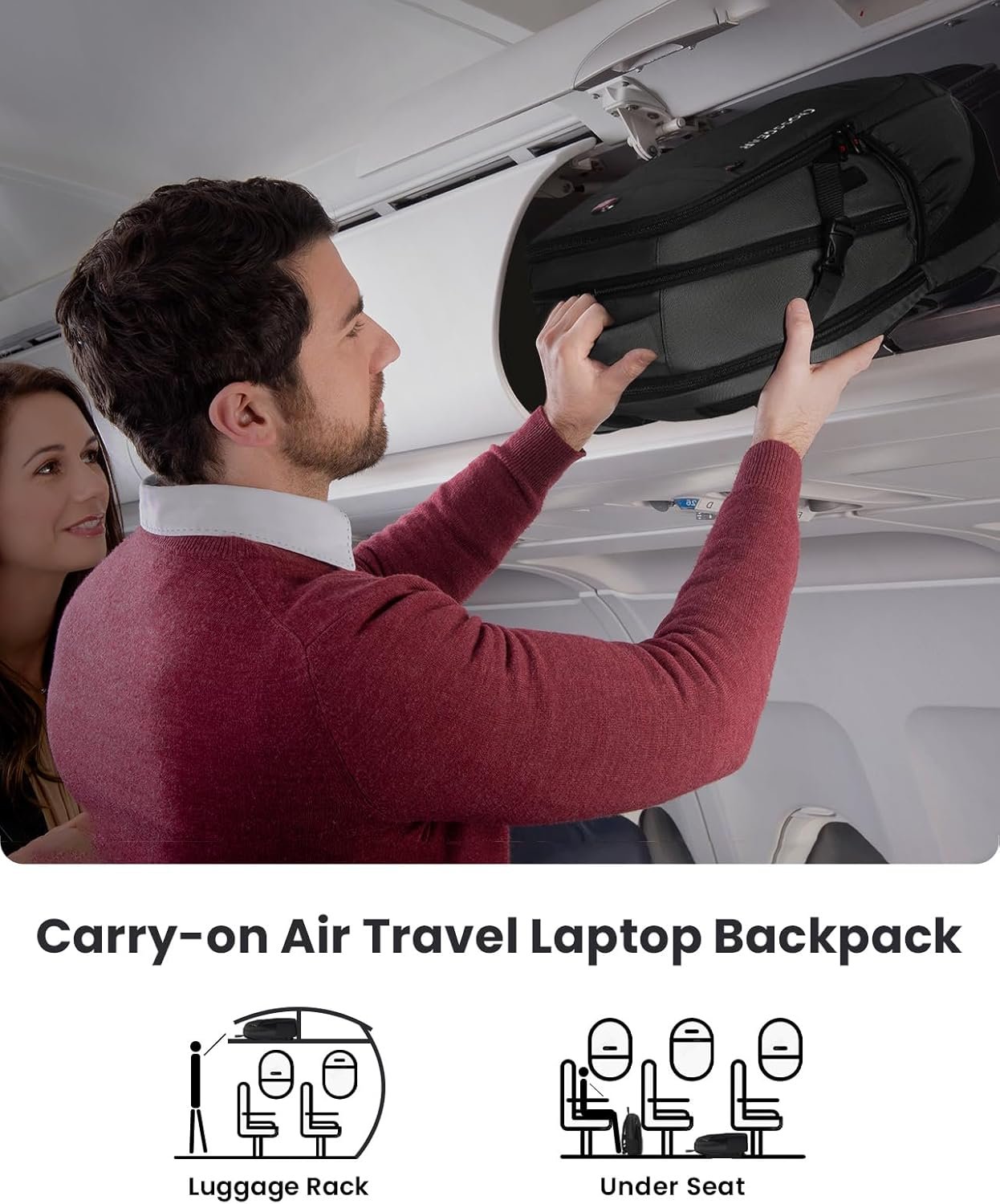 Comfortable Backpack: Carry-on flight backpack with back U shaped three dimensional ventilation design, comfortable wide breathable mesh shoulder straps with plentiful sponge pad help relieve the stress and protection laptop from your shoulder. Served as durable large laptop bag or spacious business backpack, when you are traveling or on business trip, you can use it at anywhere for International travel, camping, hiking, trip. Note: Bookbag is waterproof but not for a long time in the rain!