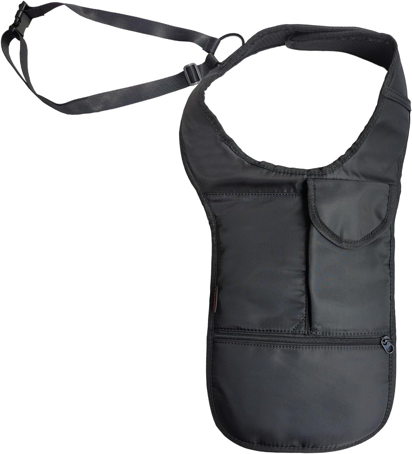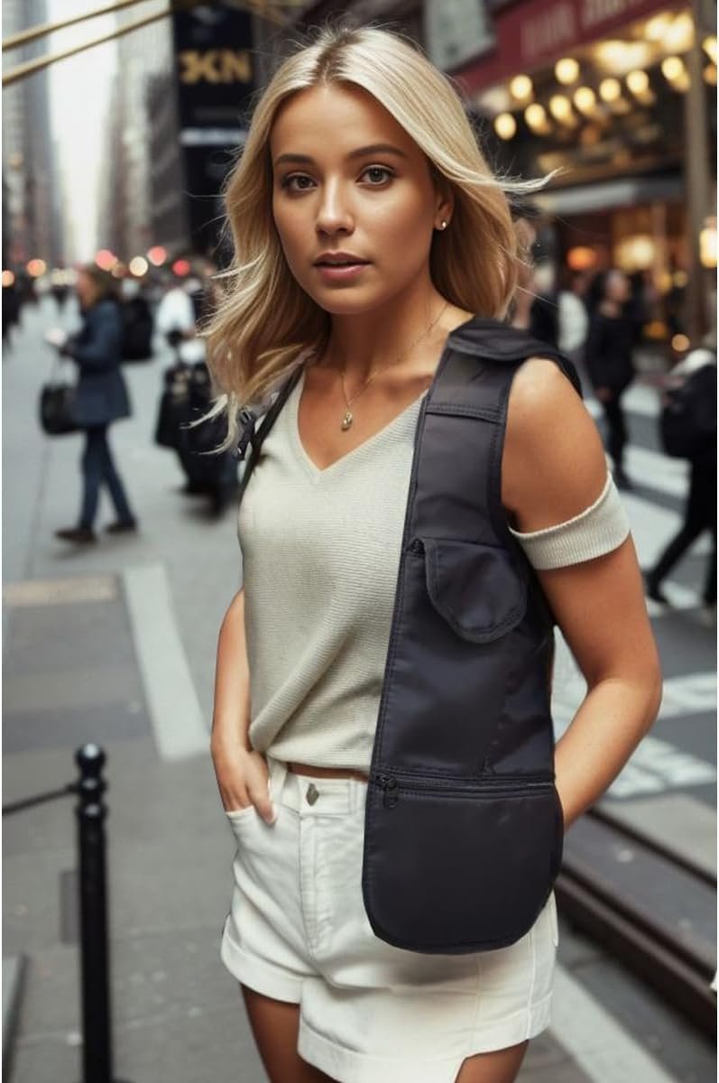 This hidden underarm bag comes with considerate compartments, it’s easy to get things in and out. It will provide the highest level of security for all your valuable things from pickpocketing. It’s very well for travelling abroad. It can hold the cellphone , wallet, cash and tablets safely at same time.