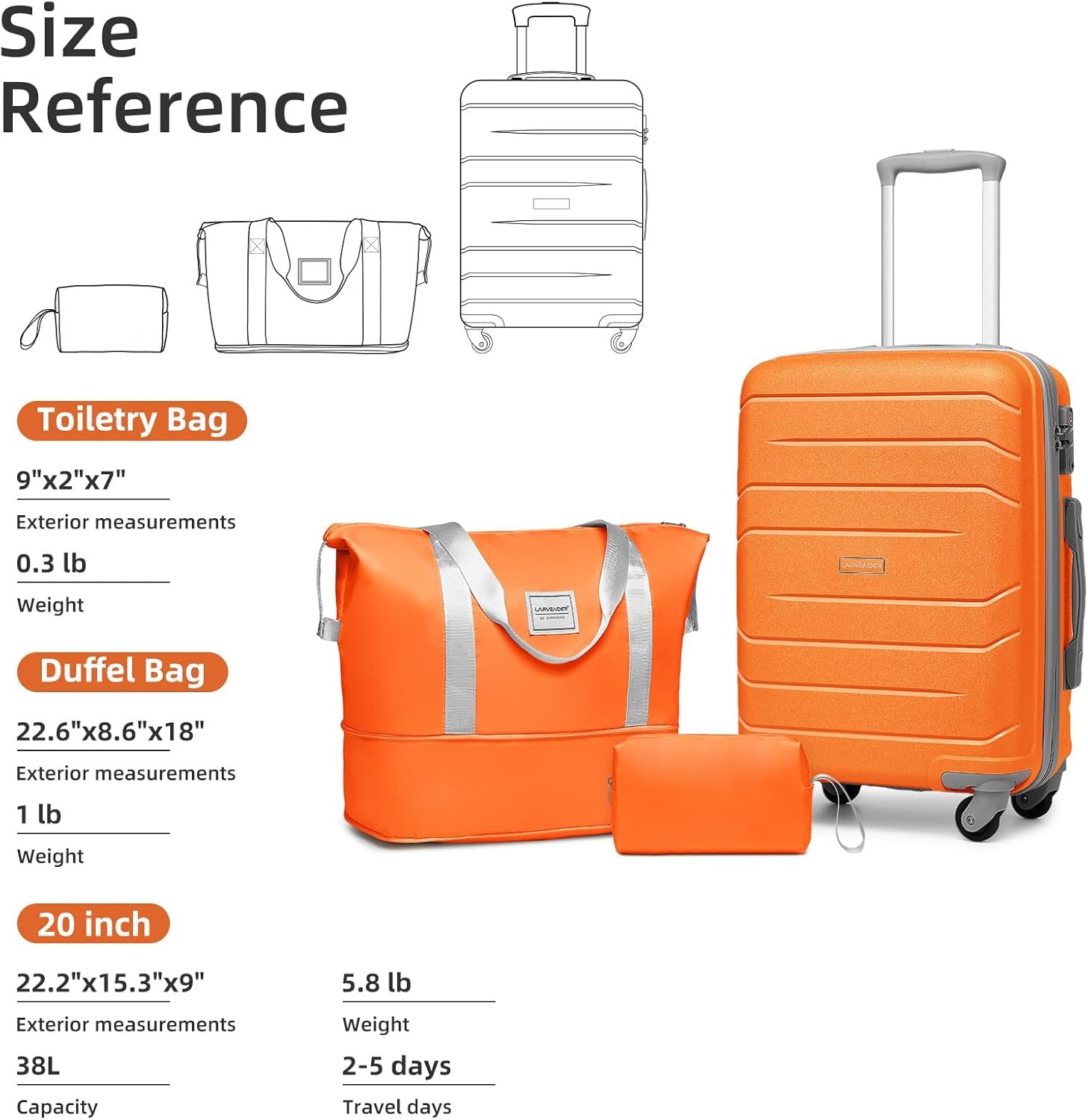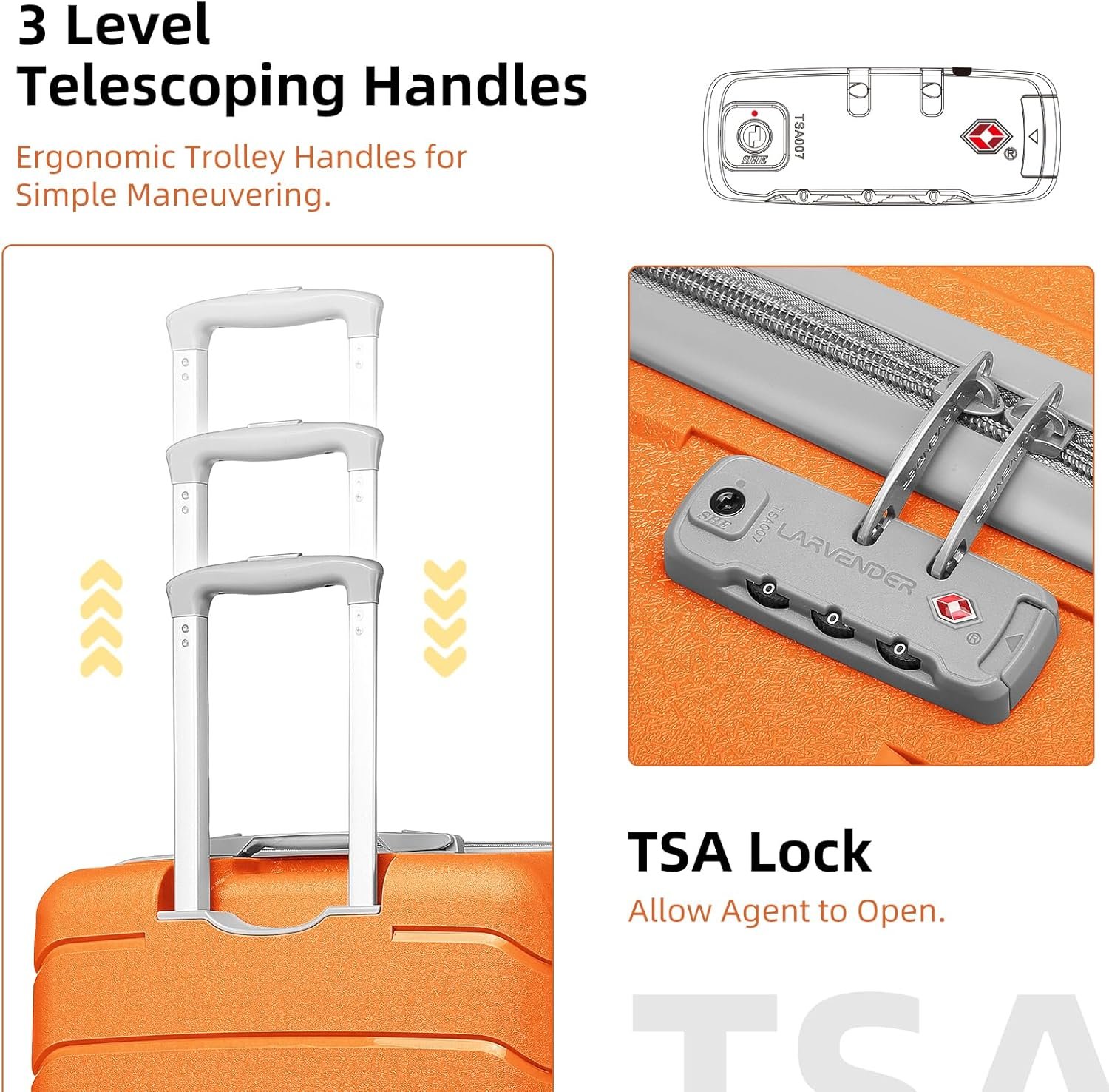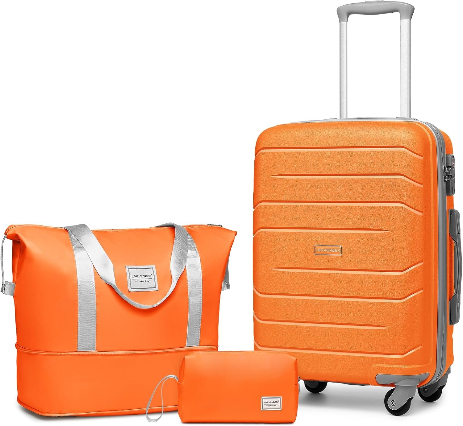 LARVENDER 3-Piece Carry On Luggage for Women,Hard Shell Suitcase 20Inch Carry On Luggage 22x14x9 Airline Approved, Spinner Wheel and TSA Lock(Tangelo 20Inch/DB/TB)