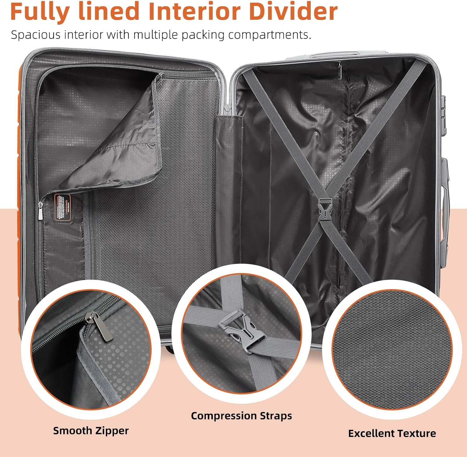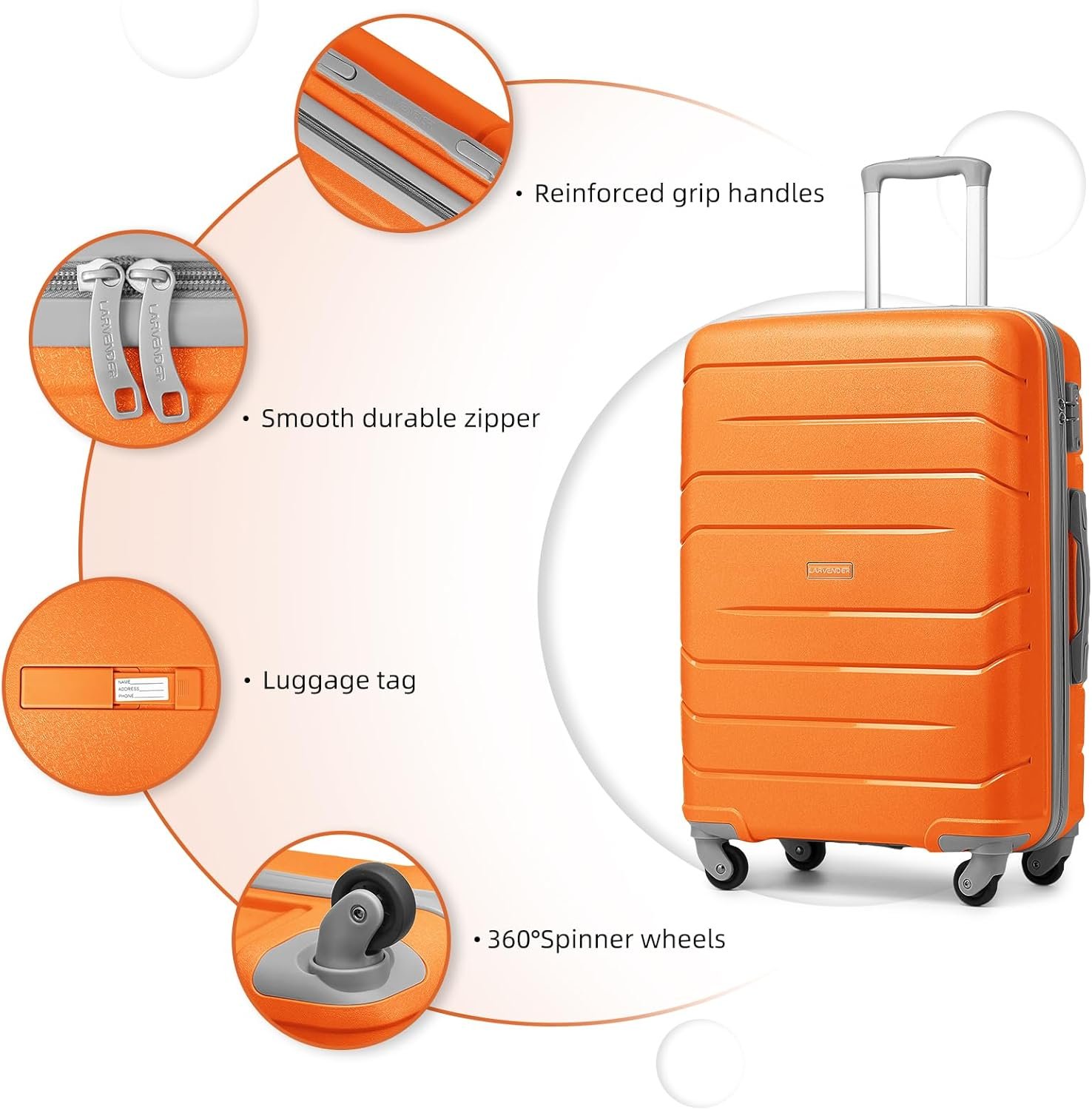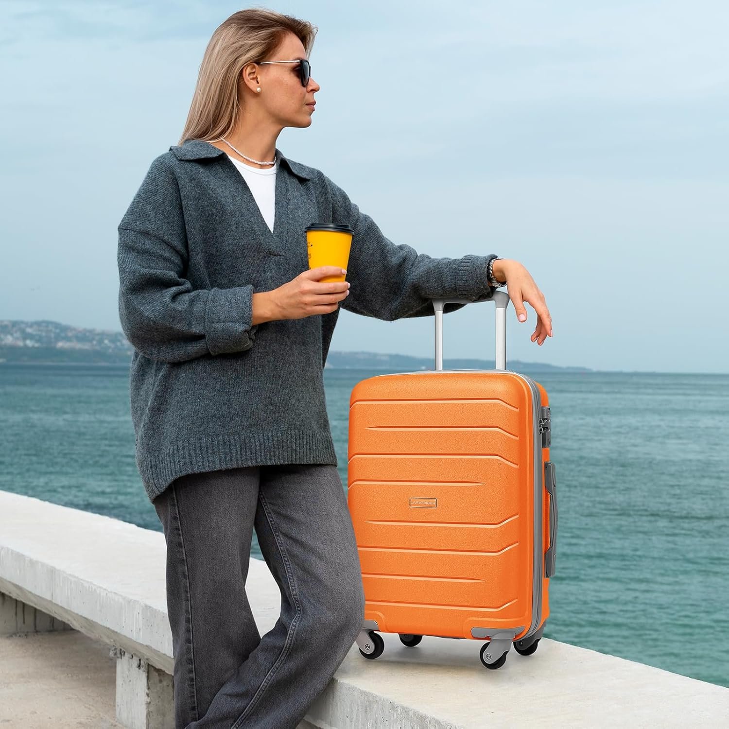 LARVENDER 3-Piece Carry On Luggage for Women,Hard Shell Suitcase 20Inch Carry On Luggage 22x14x9 Airline Approved, Spinner Wheel and TSA Lock(Tangelo 20Inch/DB/TB)