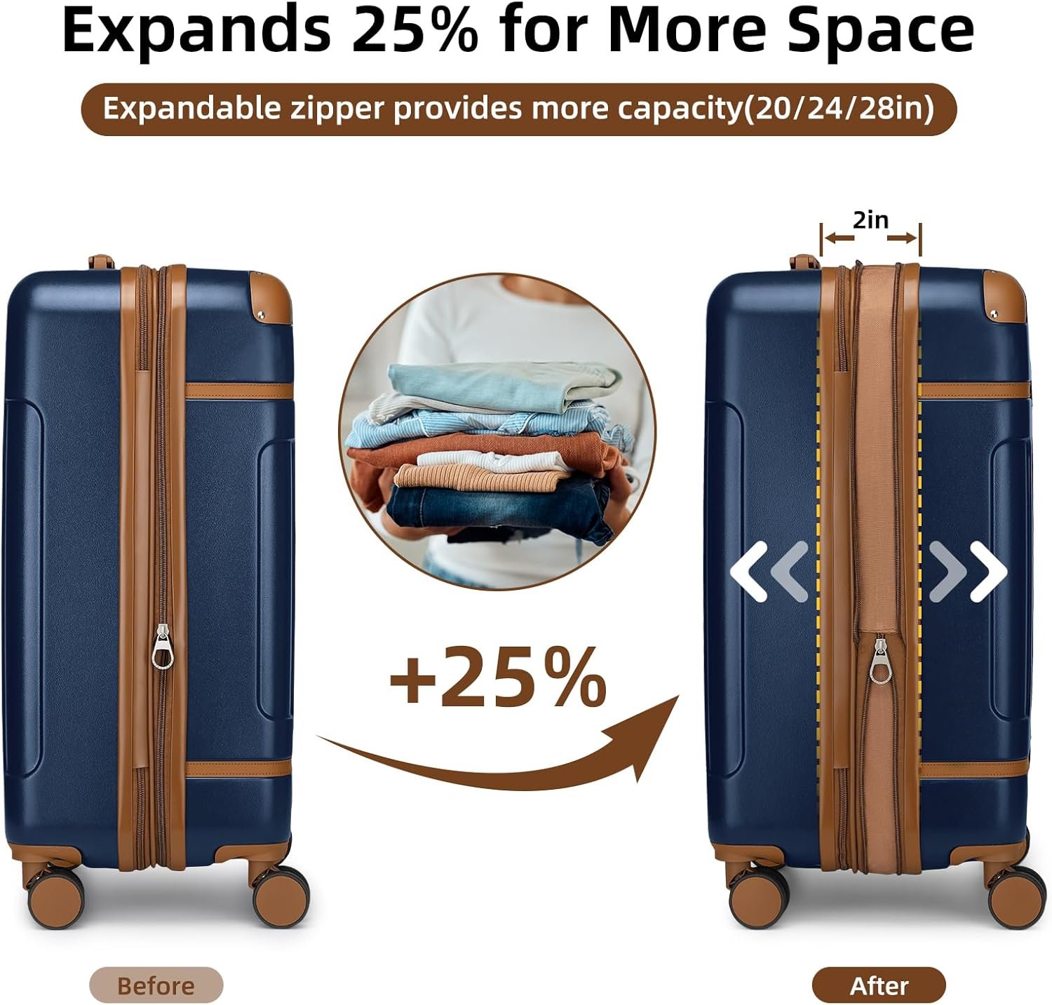Hardshell Luggage Sets: Crafted from lightweight yet extremely durable ABS materials. Our luggage seamlessly blends classic elegance with modern features, while the addition of 2 round corner protectors safeguards your belongings against damage