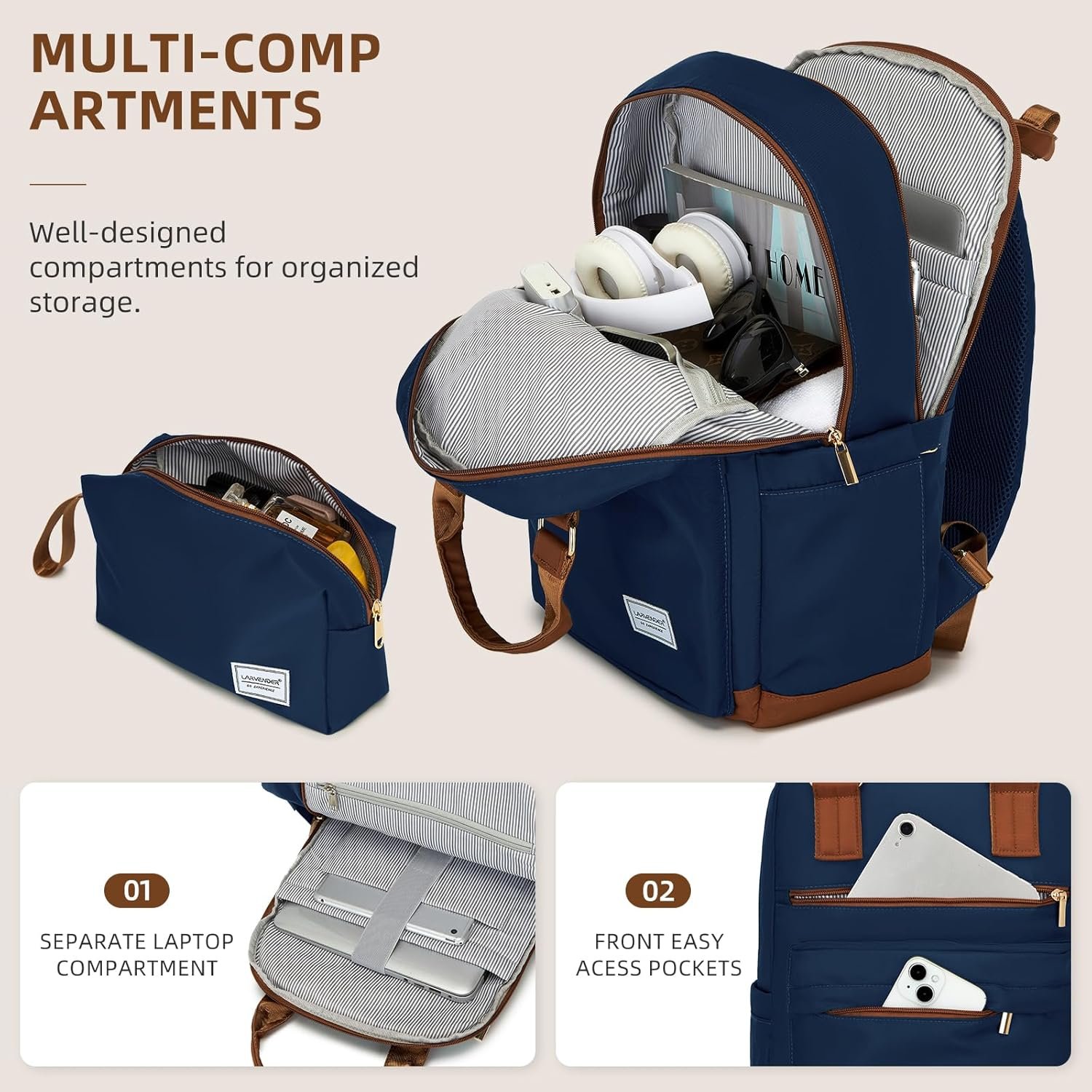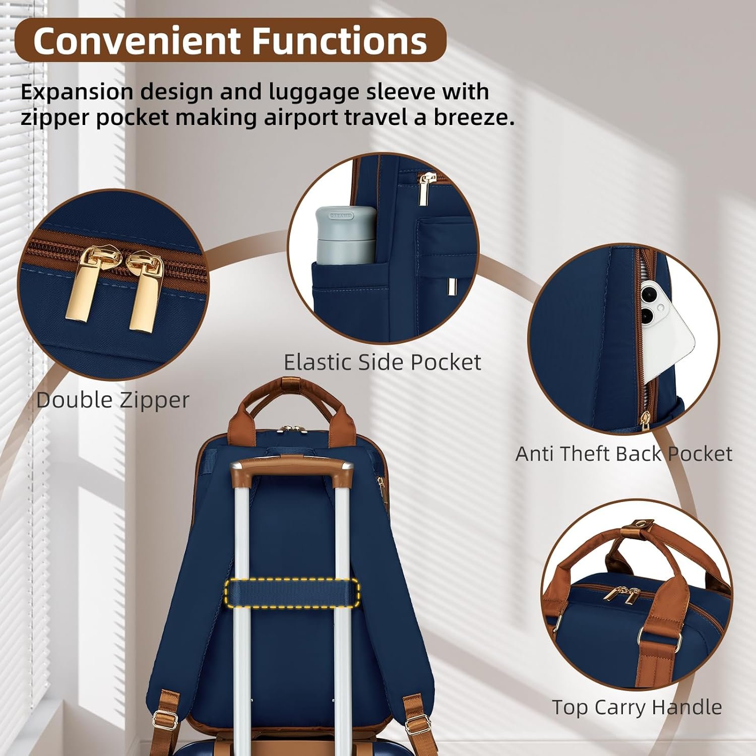 Multi-Functional Travel Backpack: This versatile travel backpack features a convenient luggage strap on the back, allowing it to securely attach to the handle of your rolling suitcase. The laptop backpack has a 15.6 inch laptop pocket, a 12.9 inch iPad slot, come with a elastic strap and thick cushion can offer the optimal protection for your devices