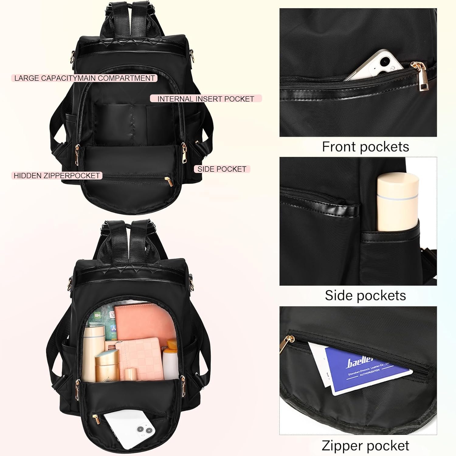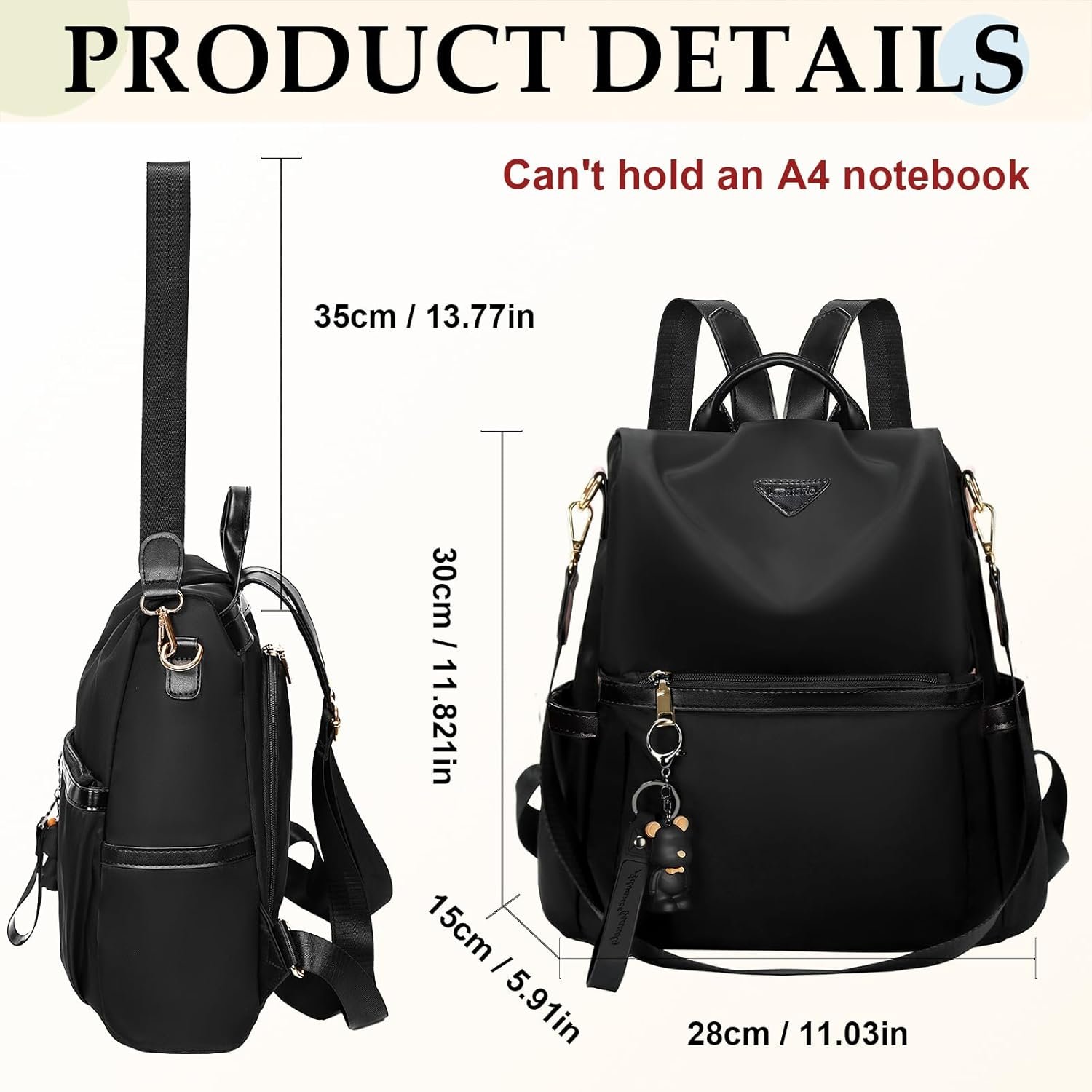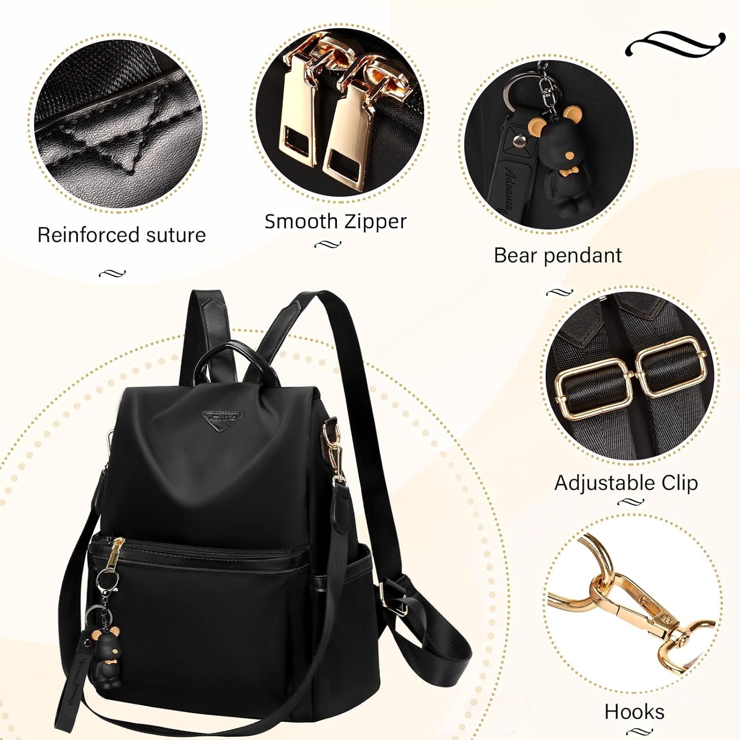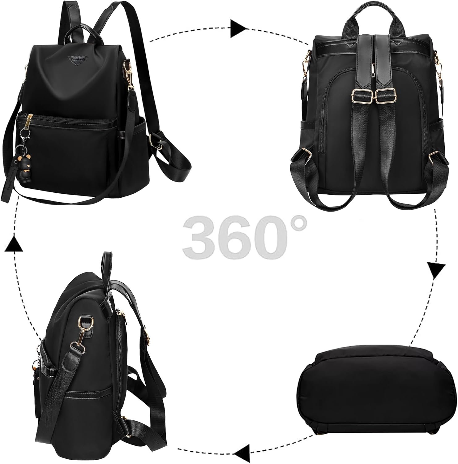 VERSATILE AND ADJUSTABLE FOR ANY OCCASION – This nylon backpack purse transitions effortlessly from a handbag to a fashionable backpack, ideal for shopping, traveling, or commuting. The adjustable straps provide a custom fit