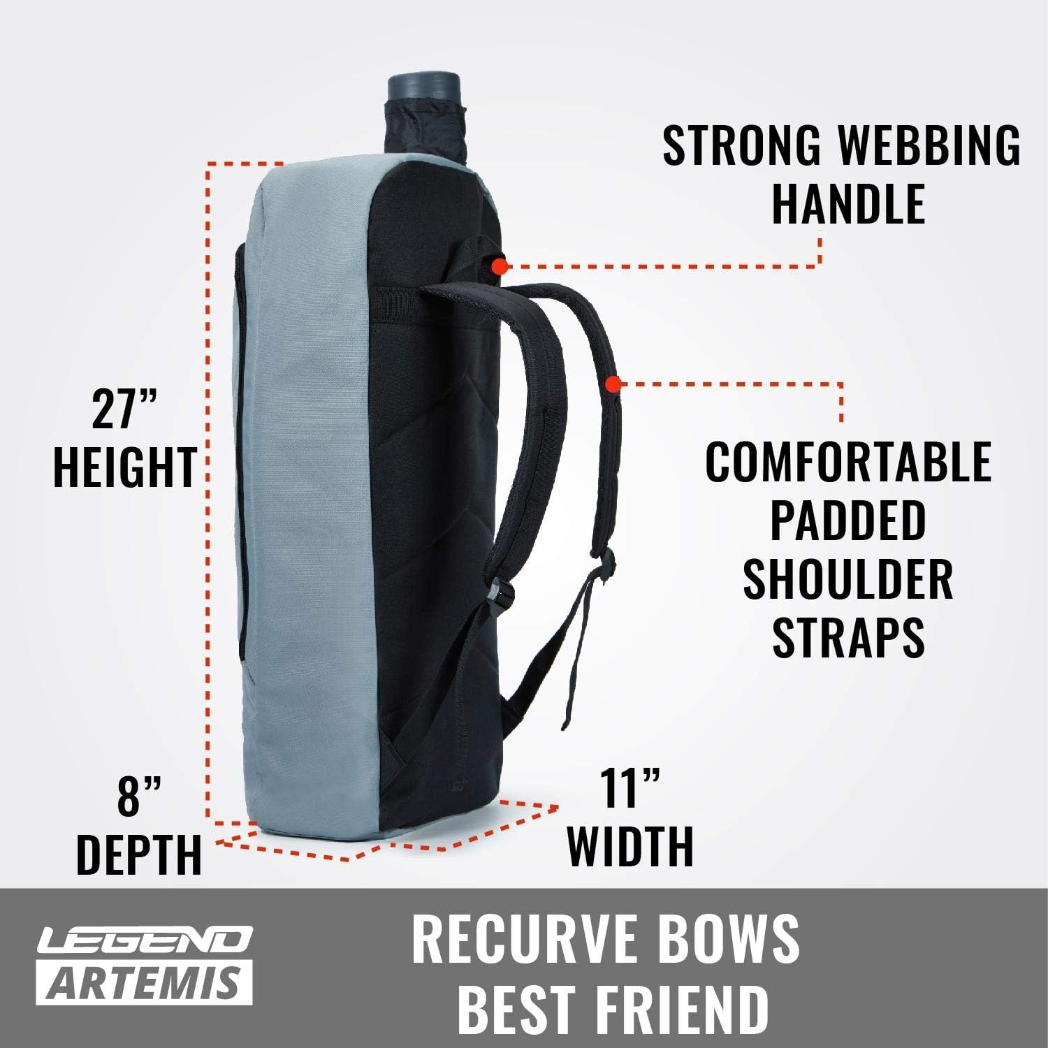 Legend Artemis Archery Backpack for Recurve Bow – Professional Bow Backpack for Travels – Storage Pockets for Gear & Accessories – Protective Foam Padding – Comes with Arrow Tube Case – 11″x8″x27″