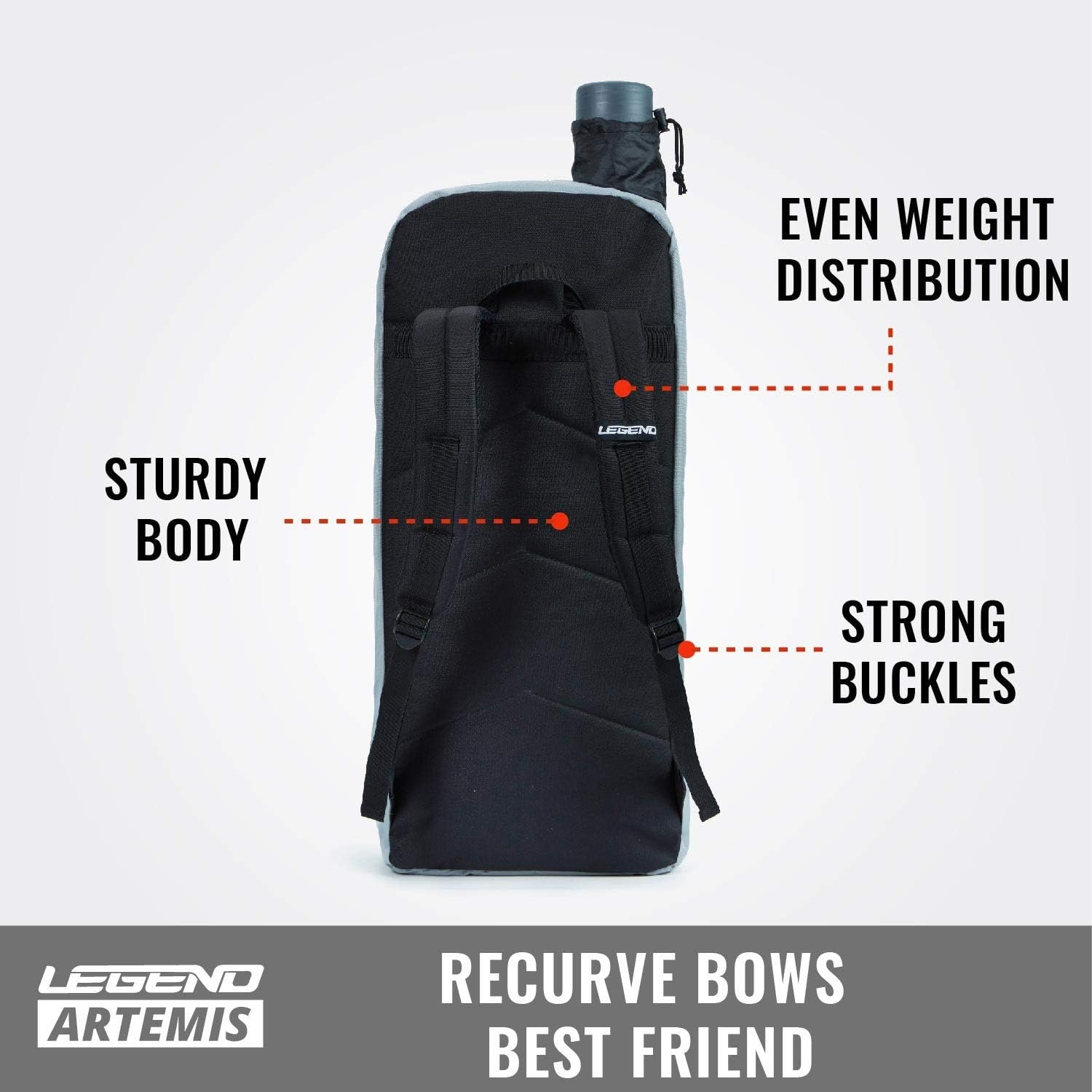 TOTAL PROTECTION; With a super thick expanded foam padding on all surfaces and 600D Oxford polyester, the LEGEND Artemis recurve backpack bag will keep your valuable recurve bow fully protected from accidental drops, shocks and impacts