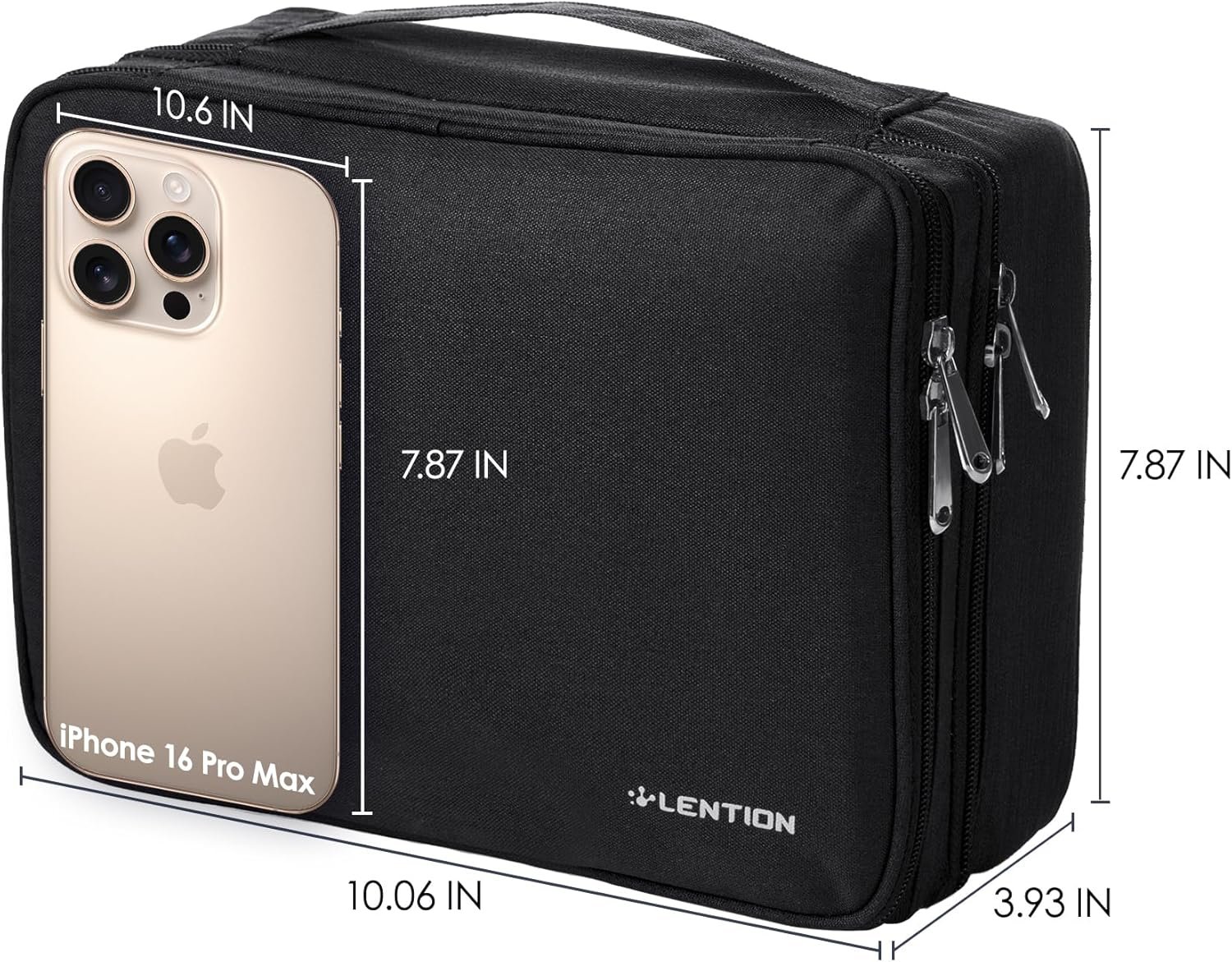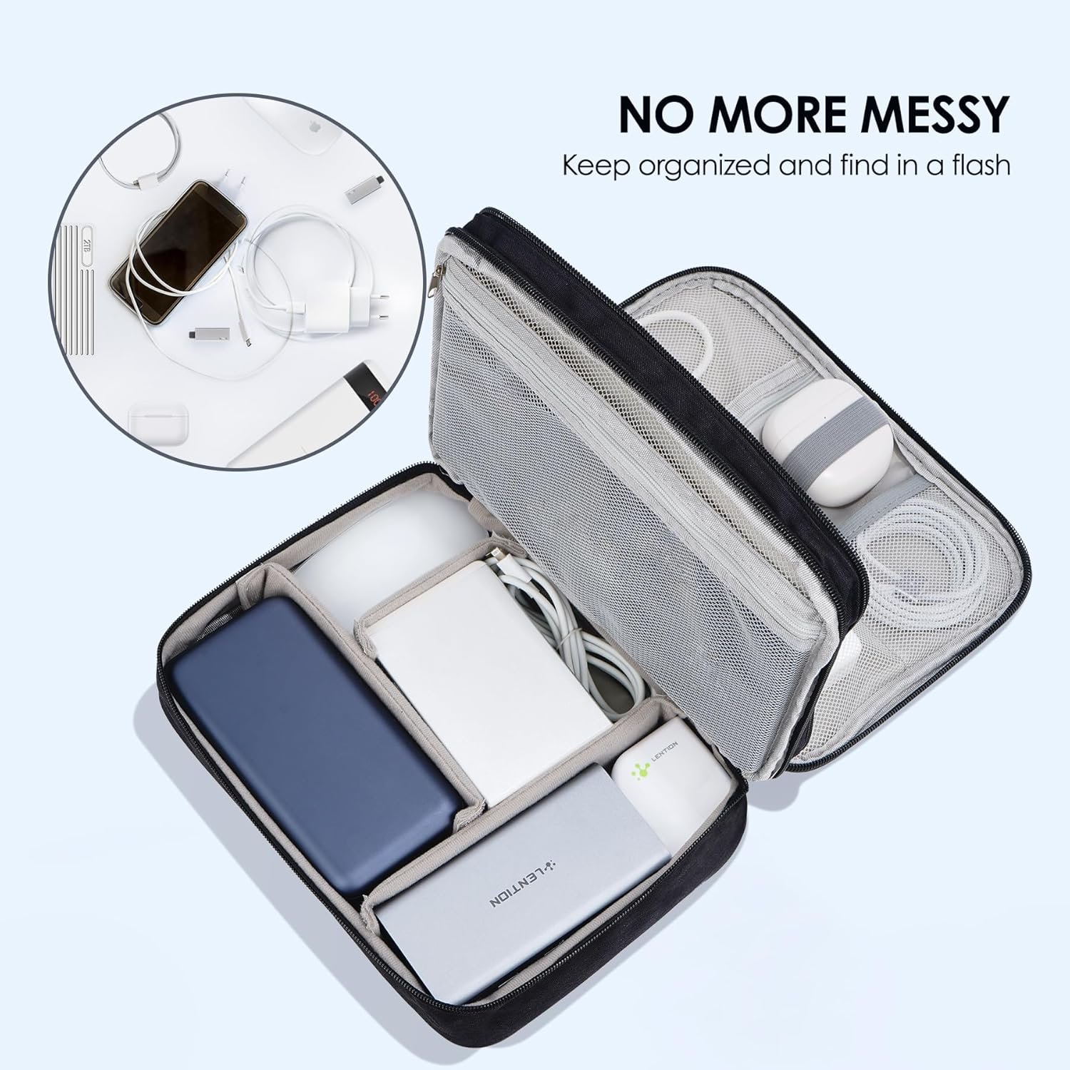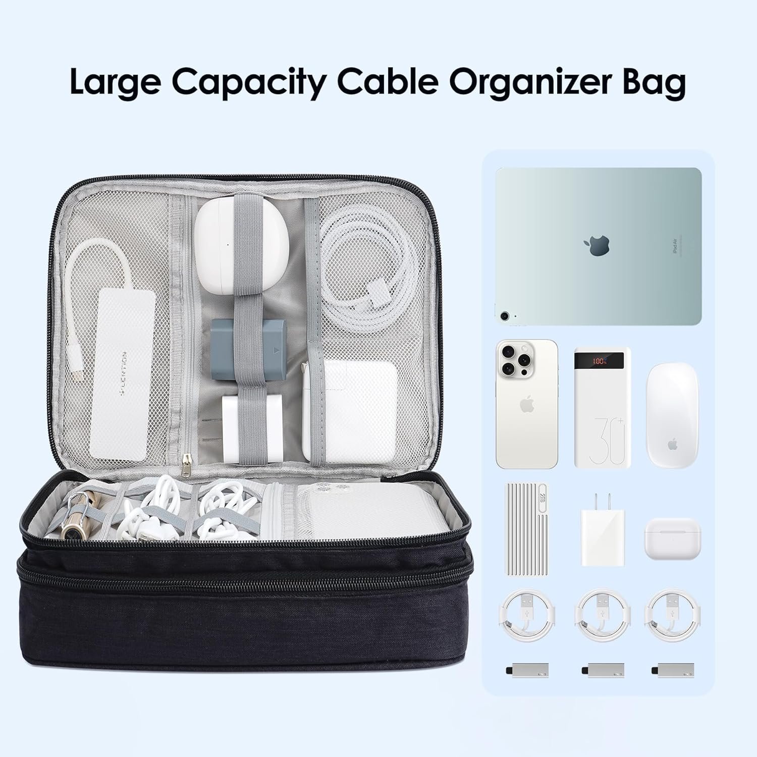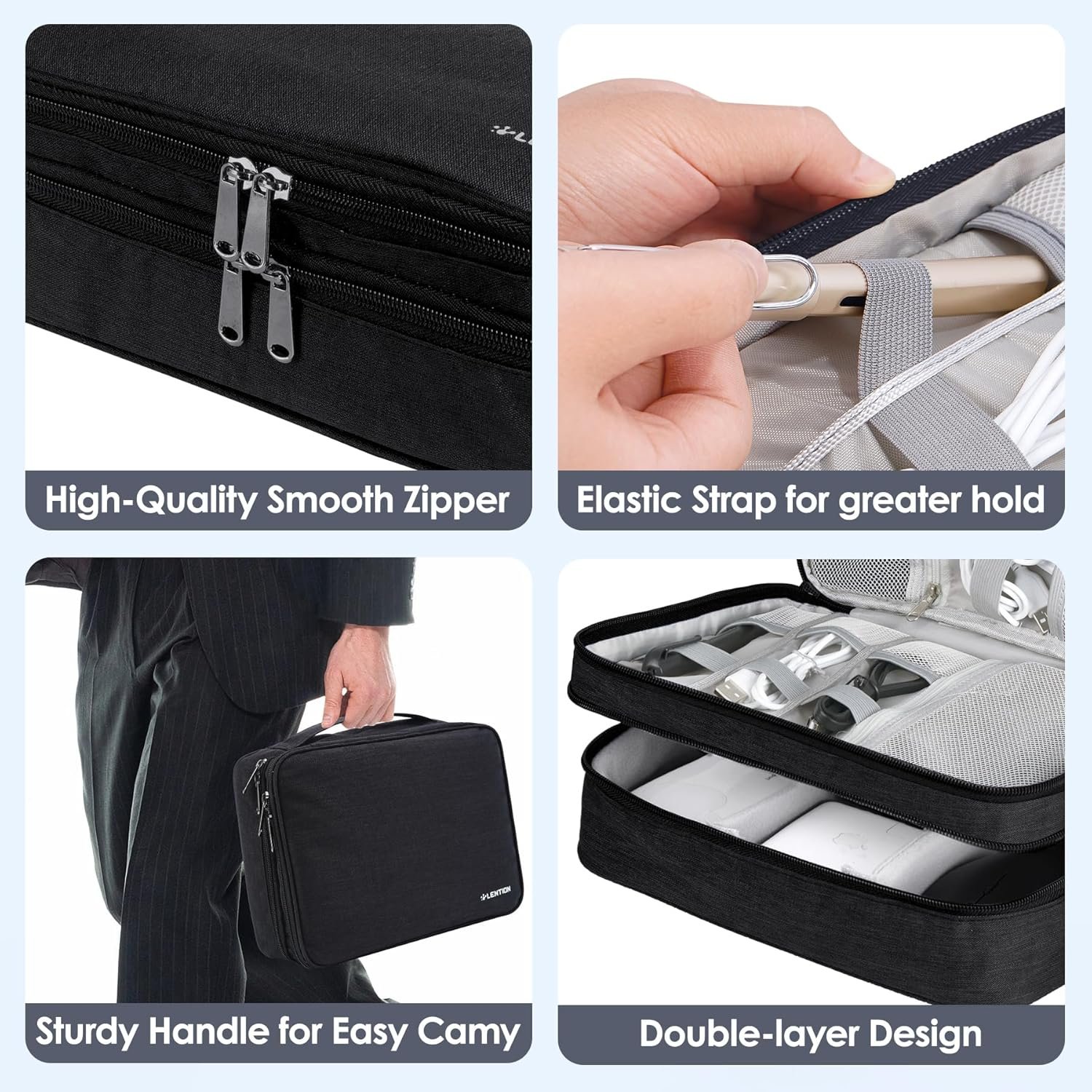 LENTION Cable Electronics Organizer Bag Pouch, Travel Accessories Carry Case Portable Waterproof Double Layers All-in-One Storage Tech for Cord, Charger, Power Bank, Earphone Black