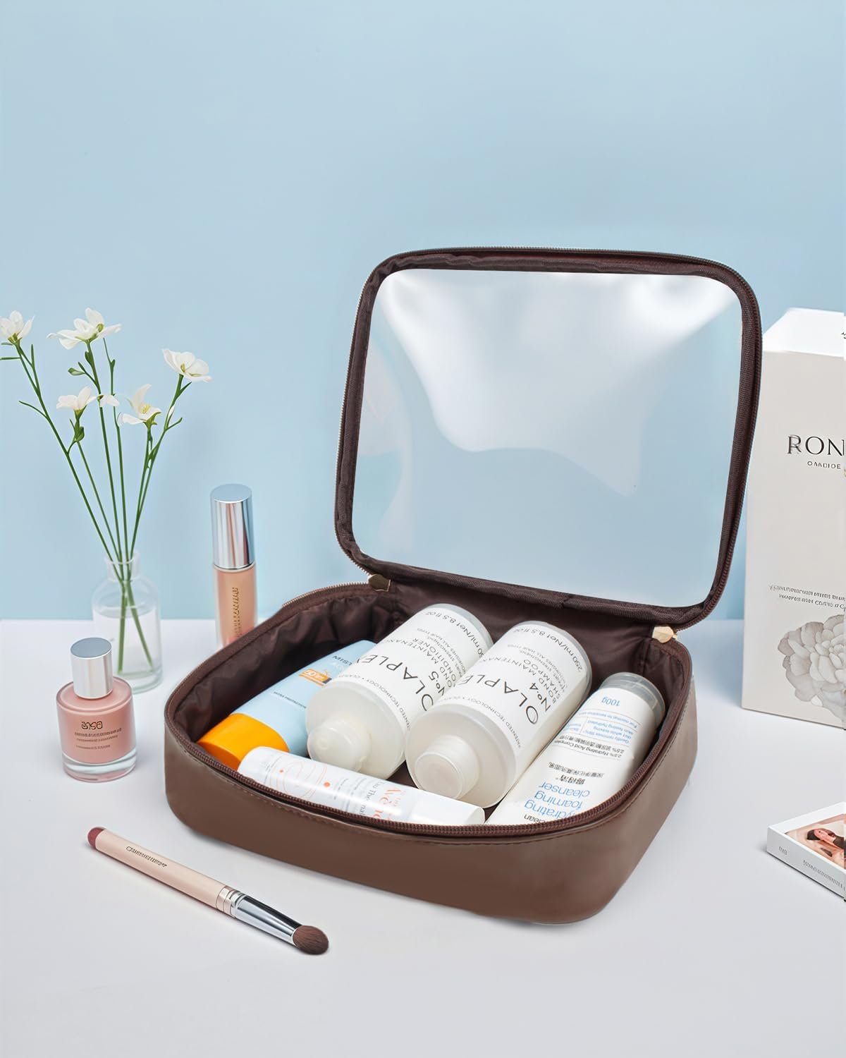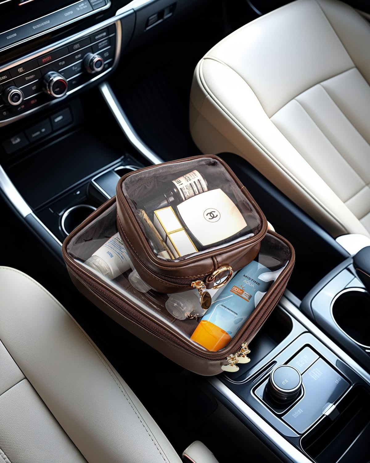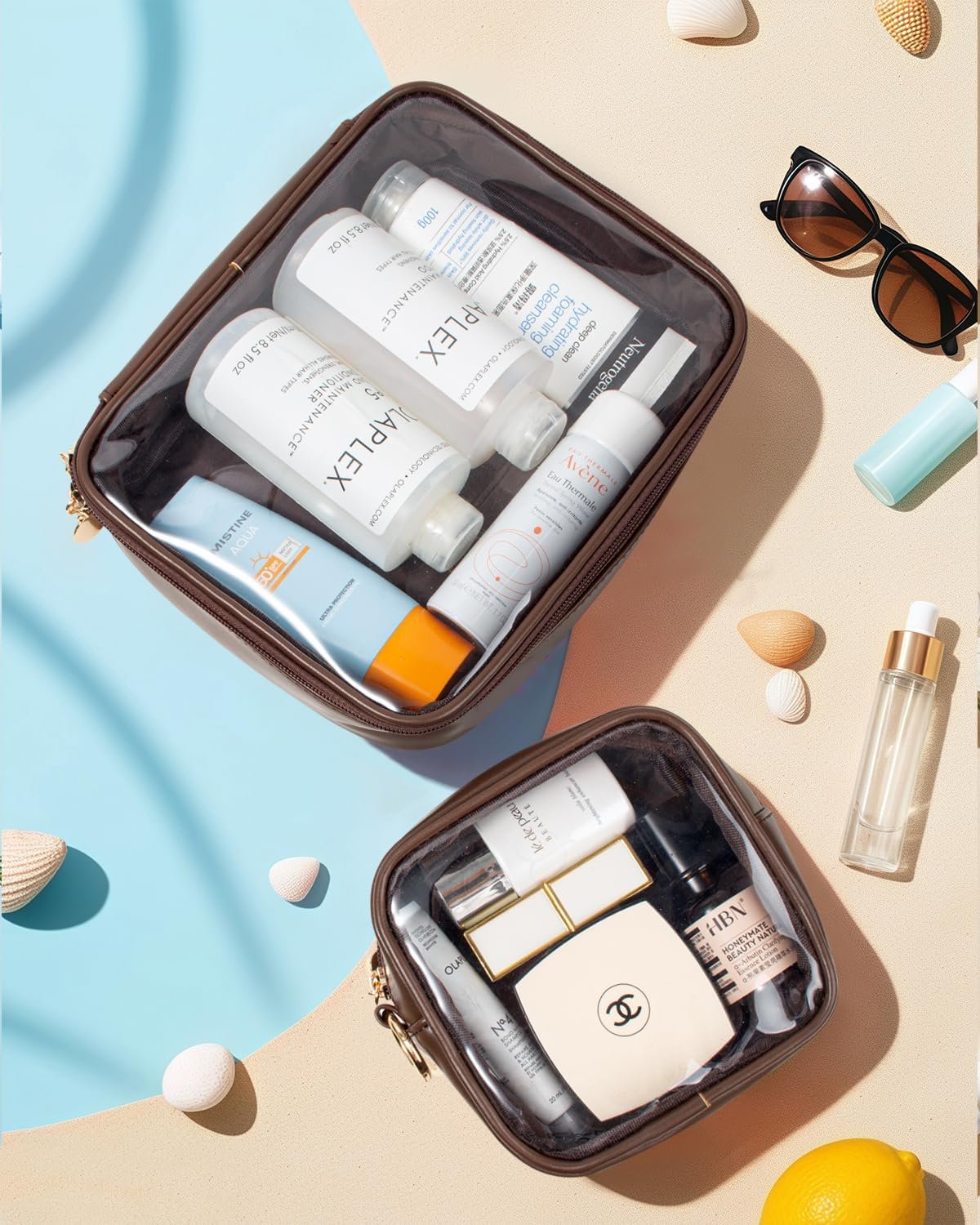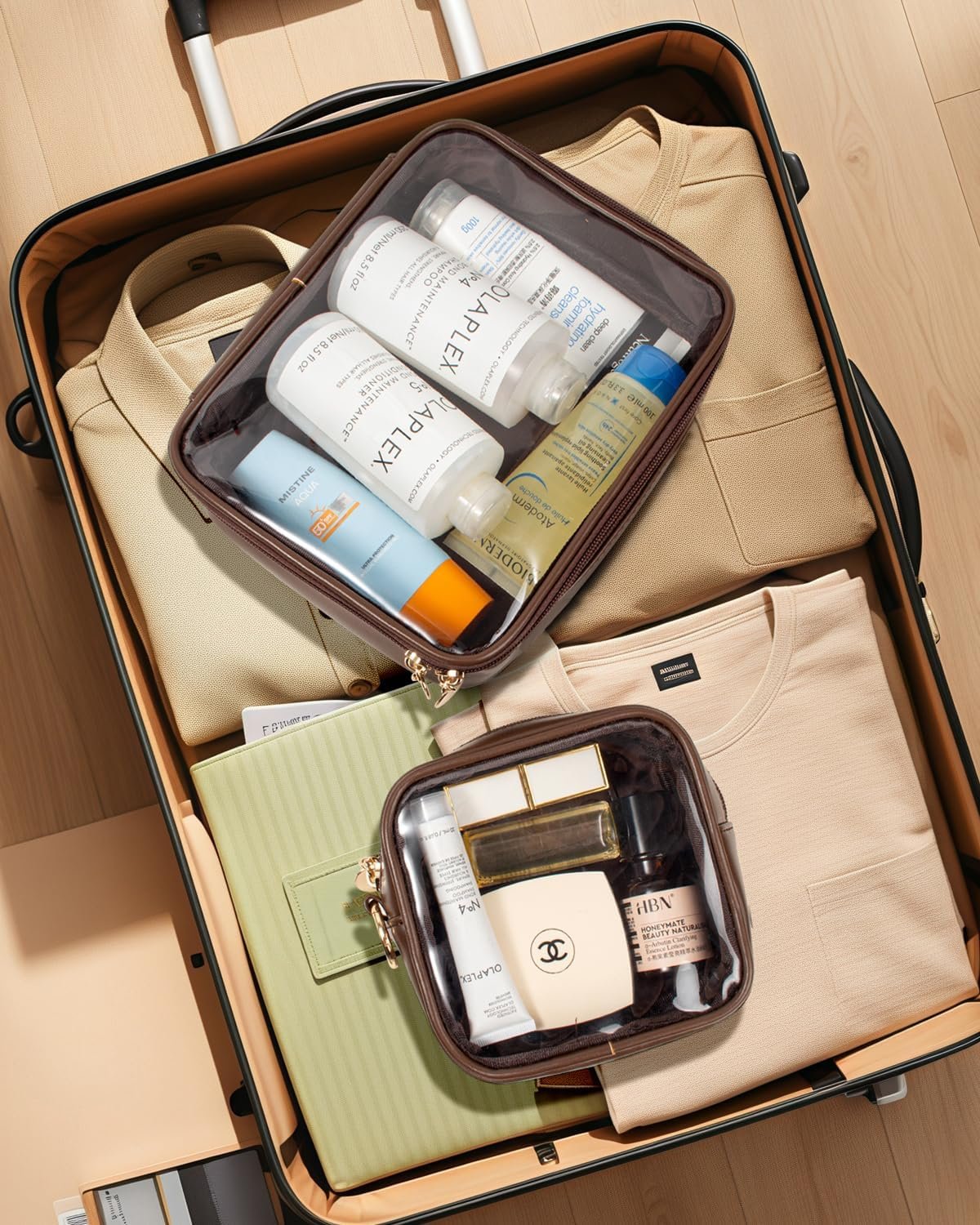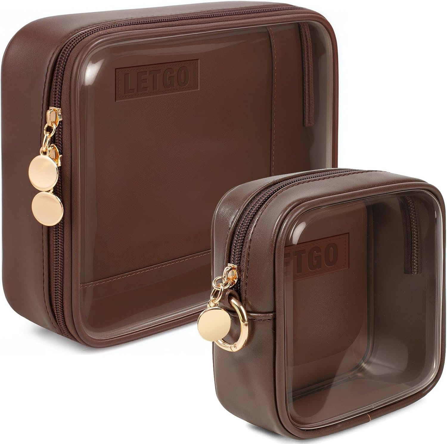 LETGO Clear Makeup Bags Set – TSA Approved Toiletry Bag, Travel Size Toiletries Clear Cosmetic Bags Pink Car Organizer Bag Gifts for Women Men (Large+Mini Chocolate)
