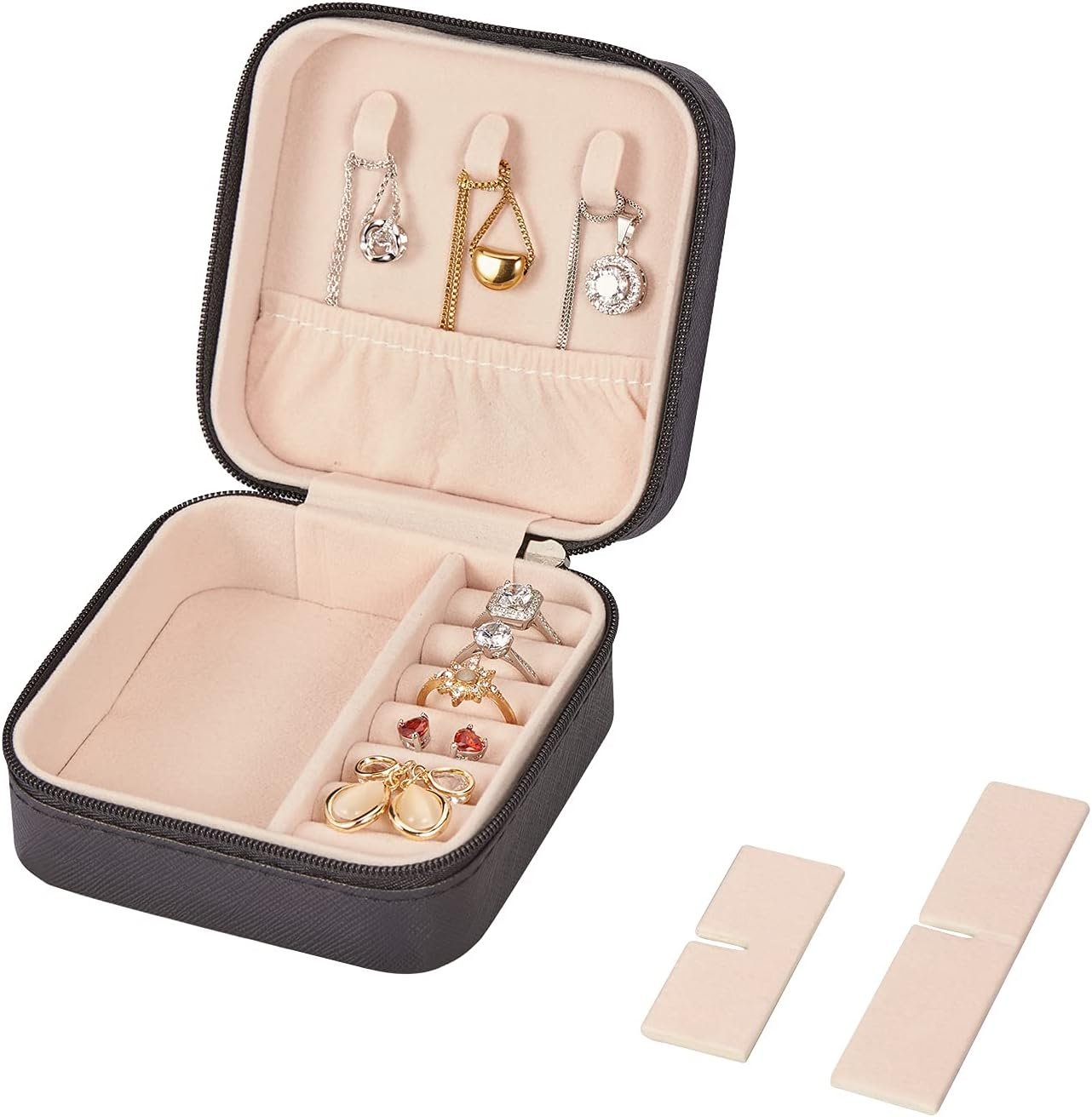 LETURE PU Leather Small Jewelry Box, Travel Portable Jewelry Case for Ring, Pendant, Earring, Necklace, Bracelet Organizer Storage Holder Boxes (Black)