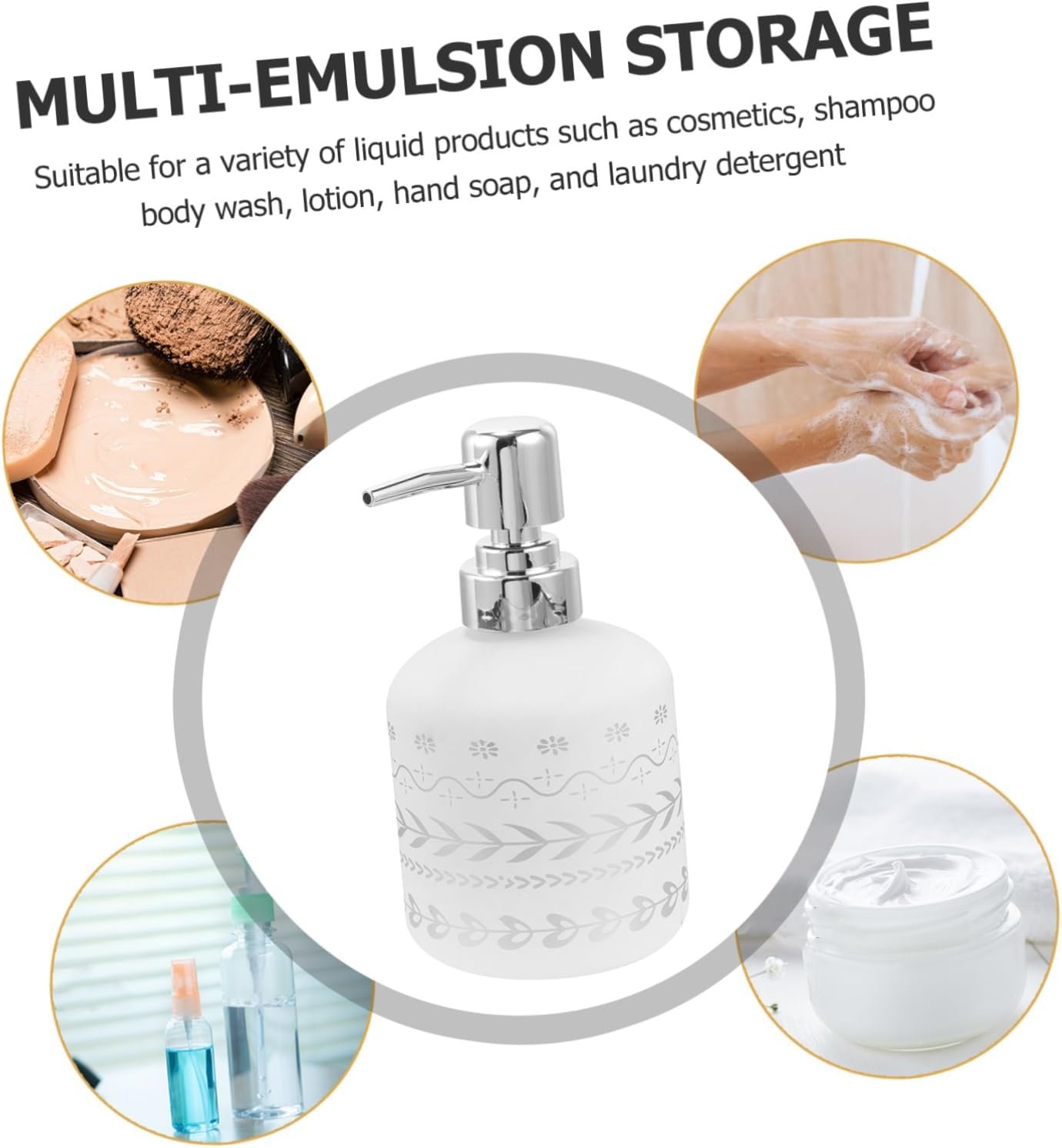 Bathroom Lotion Dispensers The Lotion Dispenser is made of materials, will feel to press the pump to use soap.Empty Refillable Pump Bottle Dispensers Thickened bottom placed more stable.Bathroom Soap Dispenser Fine workmanship with simple appearance, can decorate your personality space, such as home, bathroom, toilet, office, hotel, etc