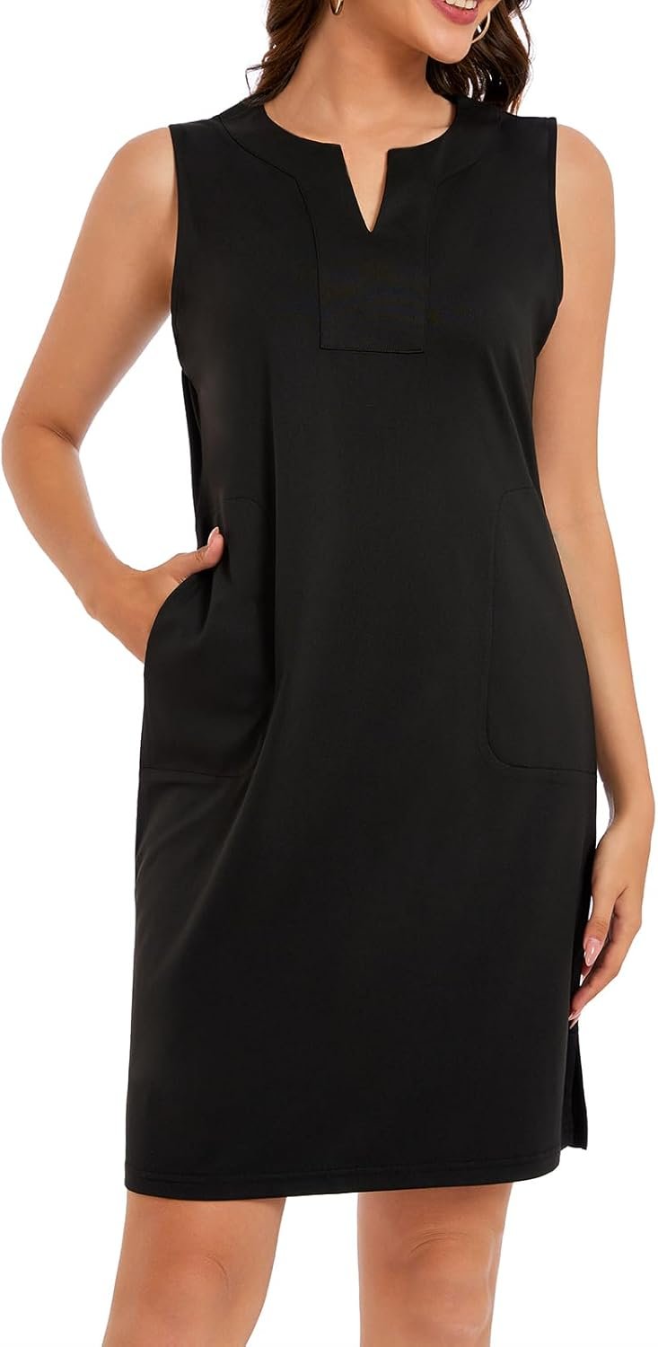 Lightbare Womens UPF 50+ Casual Sundress Sleeveless Tank Dress Notch Neck Summer Floral Dresses with Pockets Loose Fit