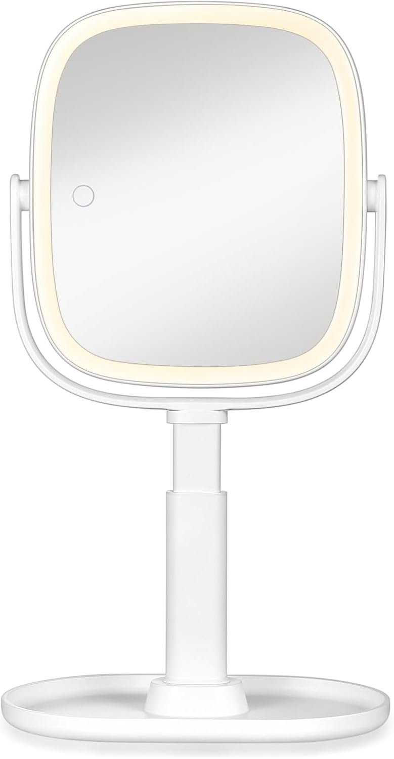 【Multifunctional Storage Base】The base of this make up mirror with lighting is not only stable but also with the tray design, which allows you to store earrings, rings, lipsticks and other small cosmetics, keeping your makeup counter organized. The base of this lighted mirror for desk can also be a phone holder and you can place your phone horizontally/vertically to watch video or take phone calls while applying makeup.