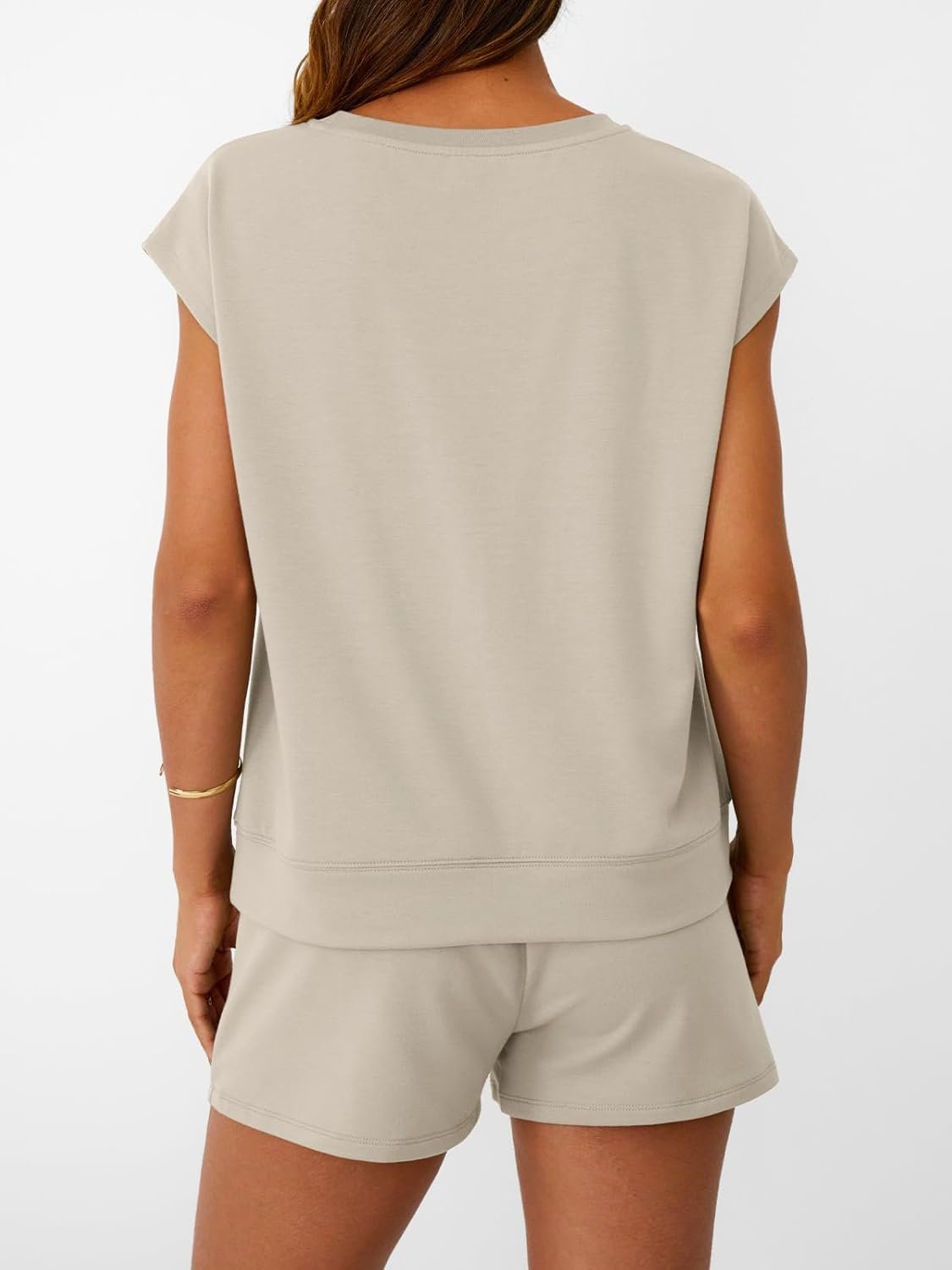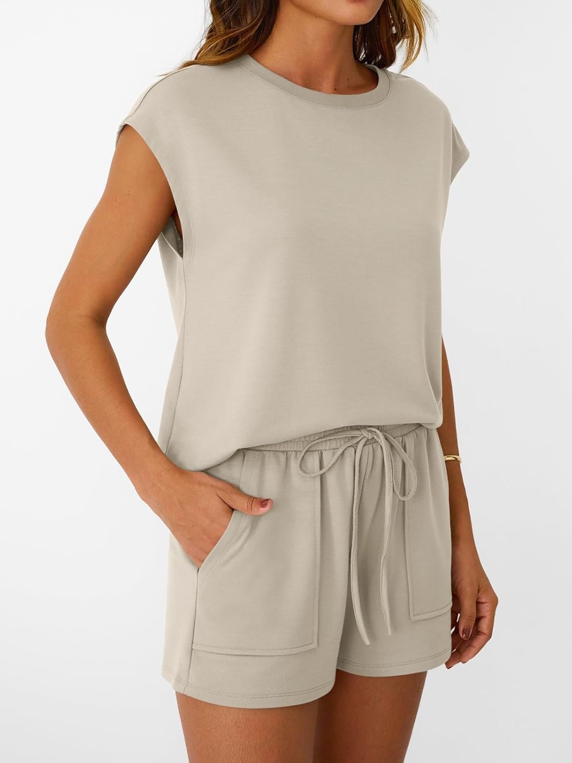 Be the first to review “LILLUSORY Womens Crew Neck Cap Sleeve Drawstring Two Piece Summer short Sets Sweatsuit with Pocket” Cancel reply