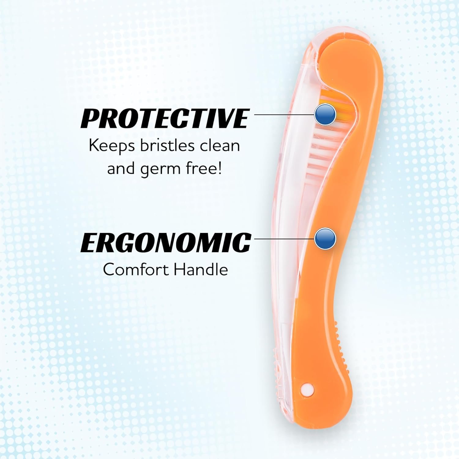 BRIGHTEN UP YOUR SMILE: Our 4-pack of folding toothbrushes features medium bristles designed to give you a thorough clean. These bristles help prevent cavities, strengthen gums, and promote a healthy brushing routine for both adults and children, ensuring everyone can enjoy a confident and brighter smile.