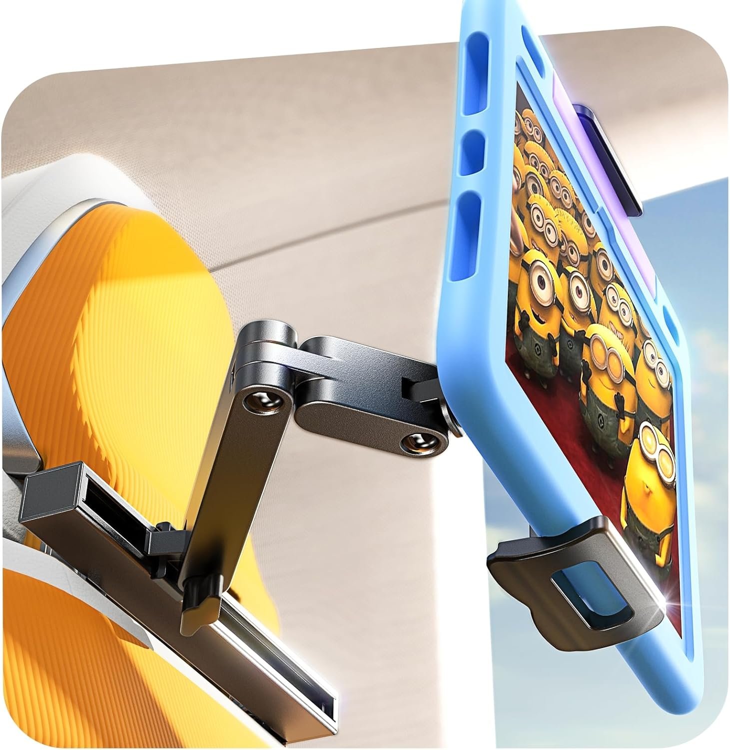 【𝐍𝐨 𝐌𝐨𝐫𝐞 𝐁𝐫𝐞𝐚𝐤𝐚𝐠𝐞】: The car headrest tablet holder for kids is crafted from premium refined steel headrest rods. 𝐓𝐡𝐞 𝐡𝐞𝐚𝐝𝐫𝐞𝐬𝐭 𝐫𝐨𝐝 𝐜𝐥𝐢𝐩𝐬 𝐟𝐞𝐚𝐭𝐮𝐫𝐞 𝐚𝐧 𝐨𝐩𝐭𝐢𝐦𝐢𝐳𝐞𝐝 𝐭𝐫𝐢𝐚𝐧𝐠𝐮𝐥𝐚𝐫 𝐬𝐭𝐫𝐮𝐜𝐭𝐮𝐫𝐞, 𝐩𝐫𝐞𝐯𝐞𝐧𝐭𝐢𝐧𝐠 𝐛𝐫𝐞𝐚𝐤𝐚𝐠𝐞 𝐚𝐭 𝐭𝐡𝐞 𝐣𝐨𝐢𝐧𝐭𝐬 𝐝𝐮𝐞 𝐭𝐨 𝐟𝐨𝐫𝐜𝐞, 𝐦𝐚𝐤𝐢𝐧𝐠 𝐢𝐭 𝐦𝐨𝐫𝐞 𝐝𝐮𝐫𝐚𝐛𝐥𝐞 𝐜𝐨𝐦𝐩𝐚𝐫𝐞𝐝 𝐭𝐨 𝐬𝐢𝐦𝐢𝐥𝐚𝐫 𝐭𝐚𝐛𝐥𝐞𝐭 𝐦𝐨𝐮𝐧𝐭𝐬. The deepened hooks and non-slip rubber pads protect your iPad, providing exceptional stability even on rough roads. It’s an excellent car travel essentials for long trips