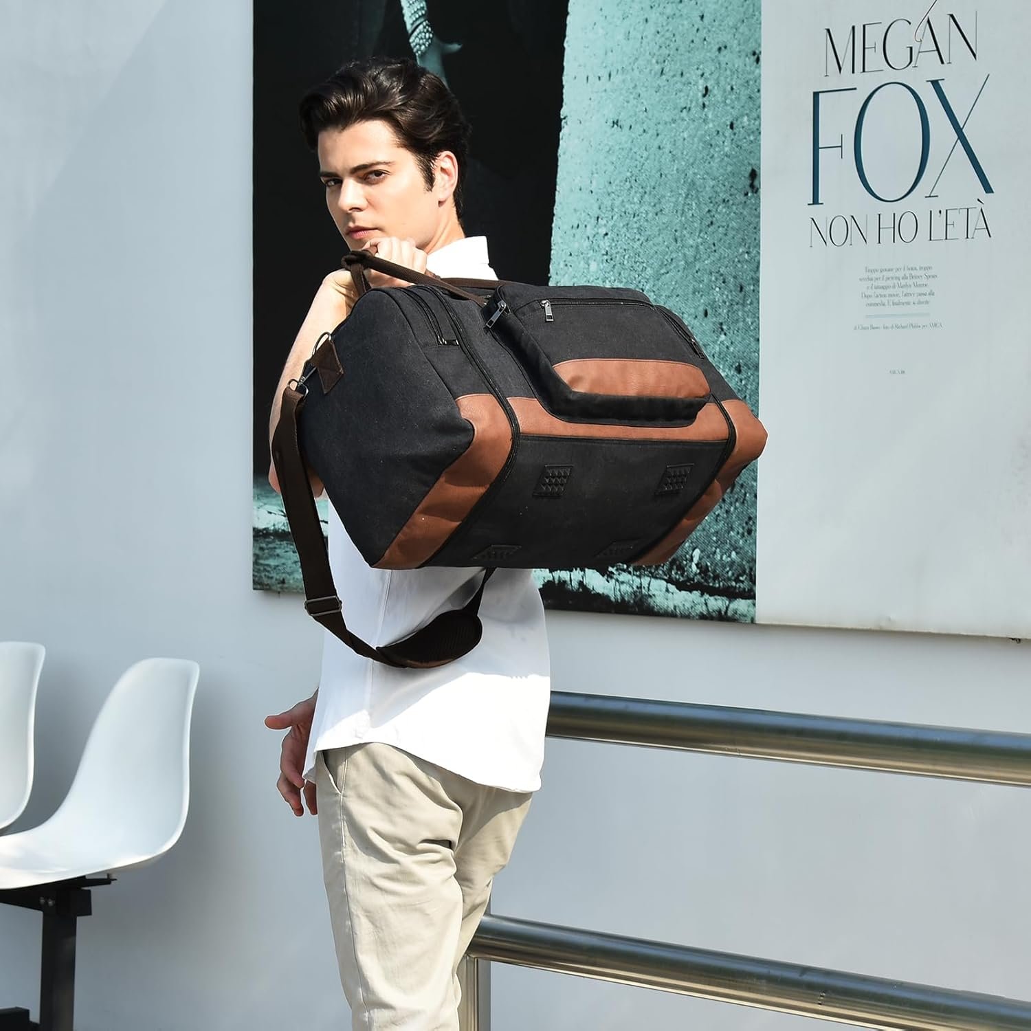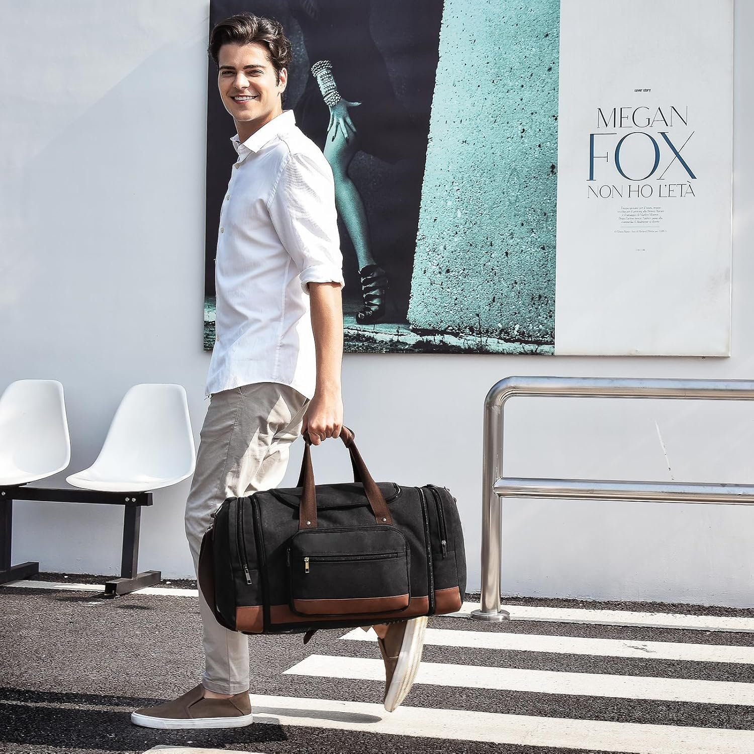 Litvyak Duffle Bag for Travel, Canvas Travel Duffel Bags Overnight Weekend Gym Carry On Luggage Bag for Men & Women(Black)