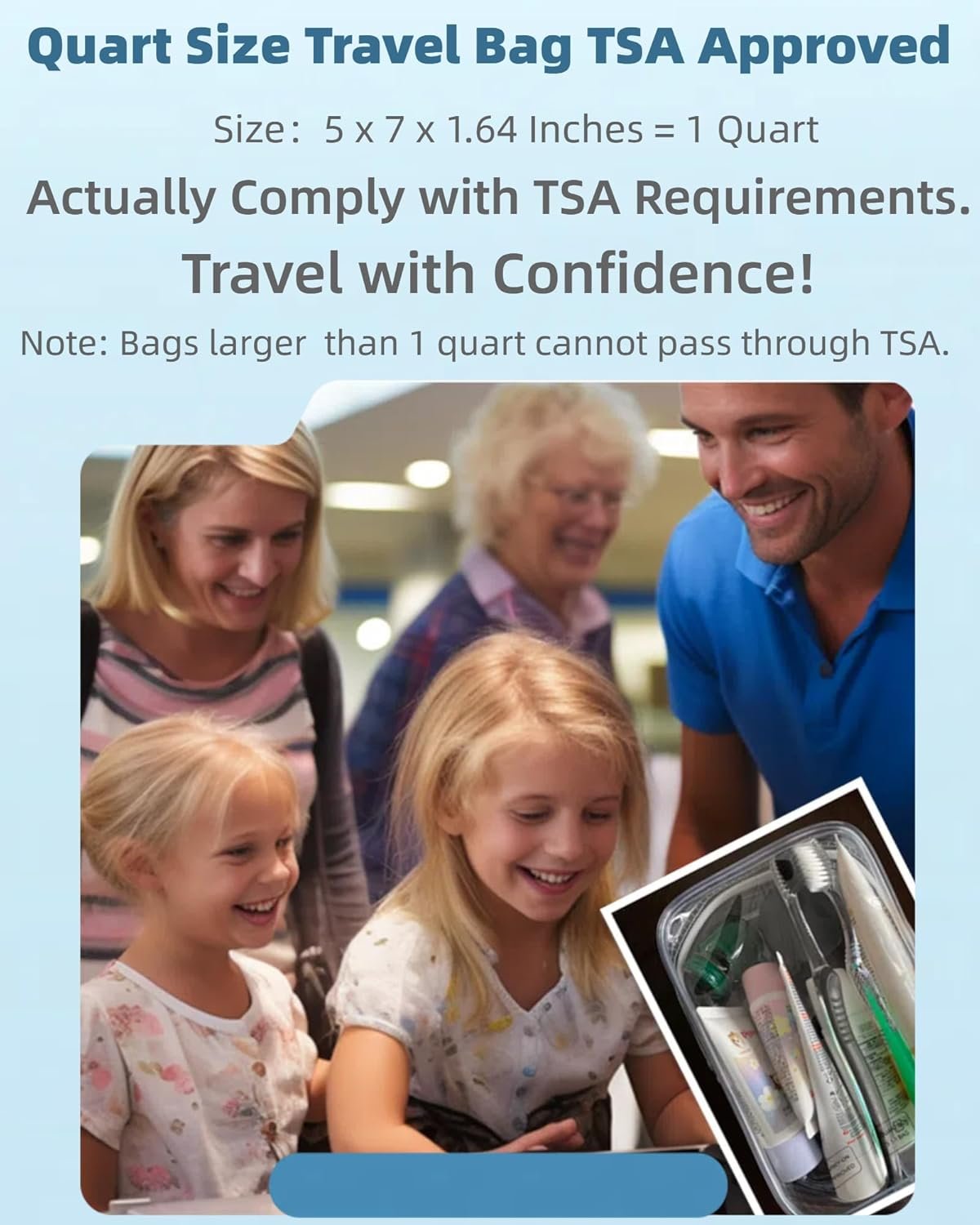 Fully TSA Compliant Toiletry Bag: Sized at 5x7x1.64 inches, one quart size travel bag tsa approved meets the 3-1-1 liquid rule of US, Europe, UK and all international airports, ensuring hassle-free security checks (Pack of 5)