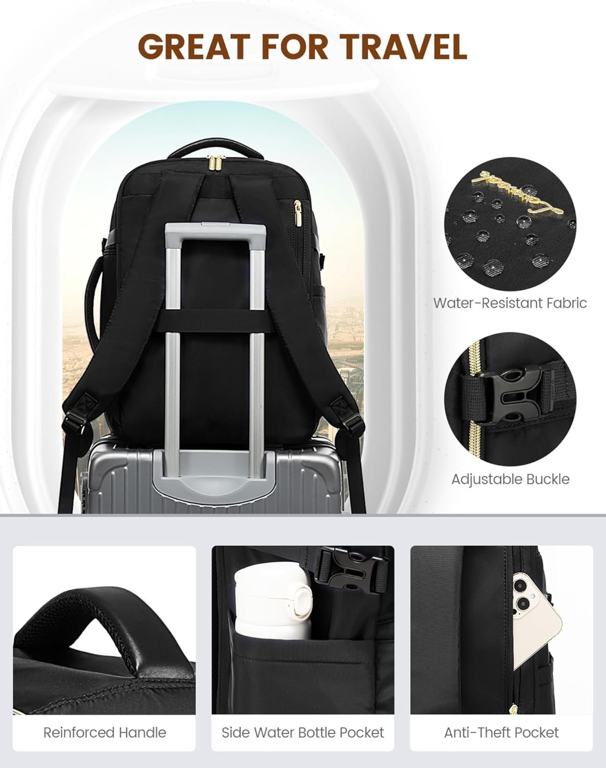 【Durable & Comfortable】Crafted from tear-resistant, waterproof, and abrasion-resistant materials, this backpack for traveling on airplane is built to withstand various travel challenges and adventures. Adjustable shoulder straps, ergonomic strap design and large padded top and side carry handles provide exceptional comfort for an enjoyable travel experience.