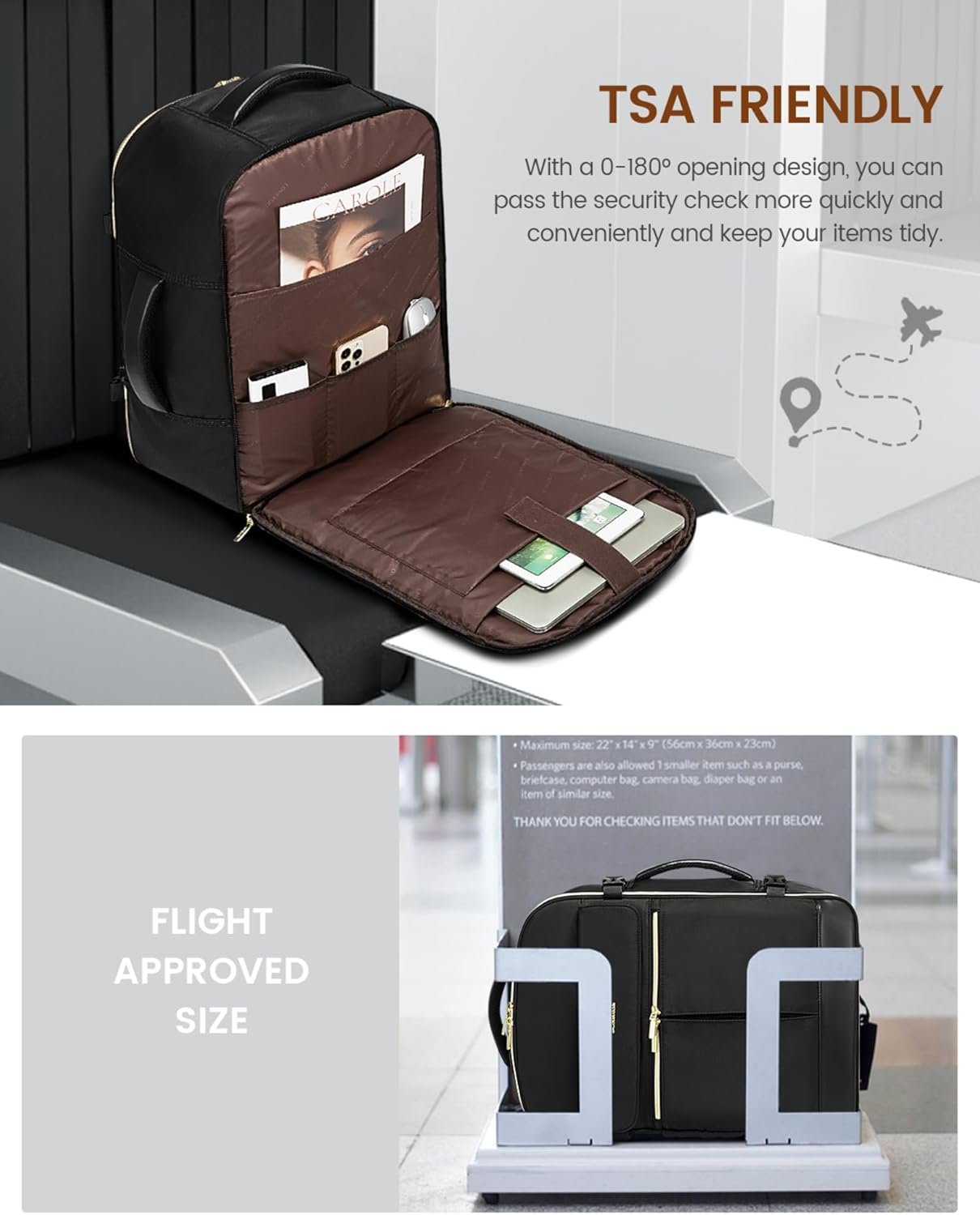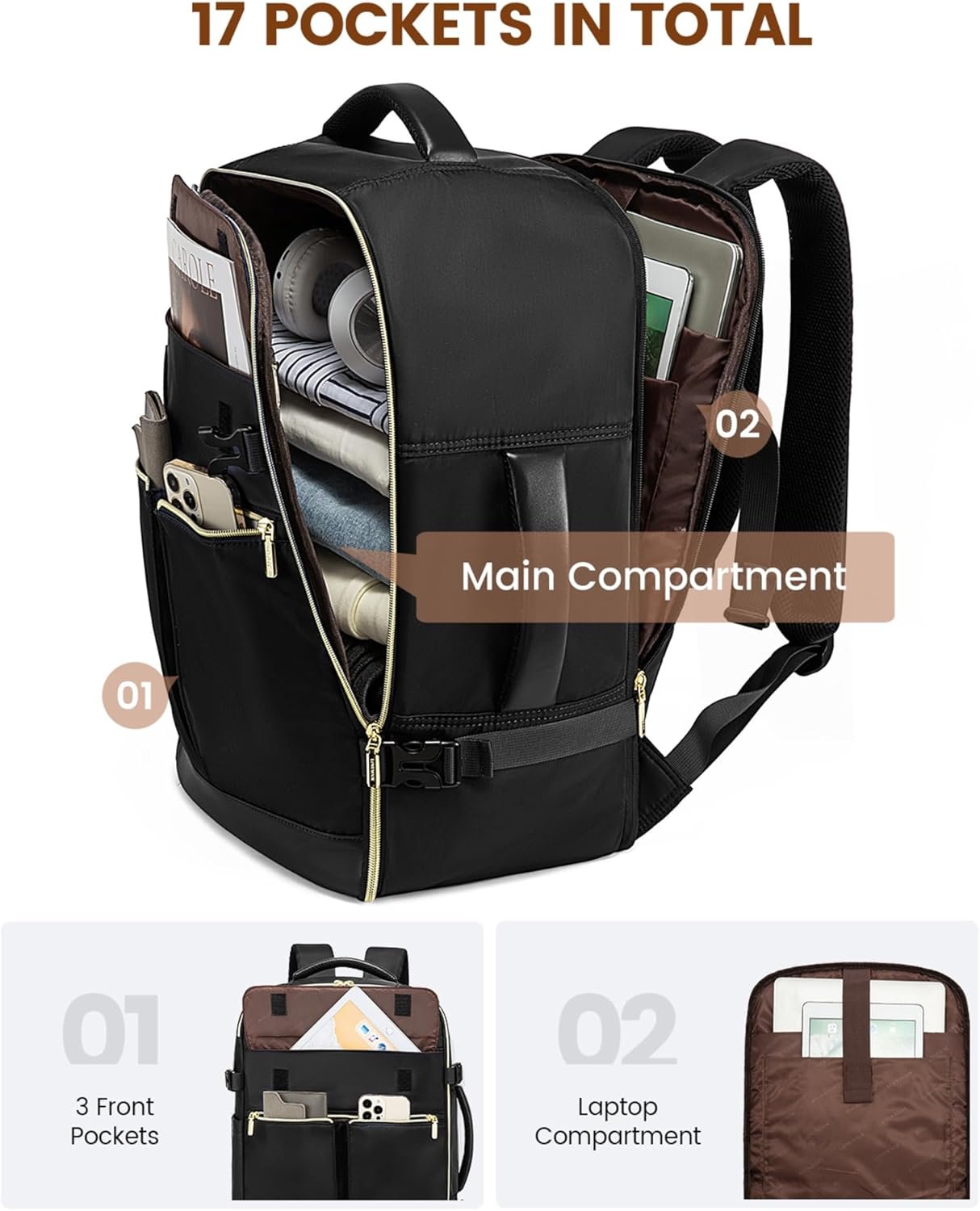 【Spacious with 17 Pockets】With a generous 40L capacity and 3 main compartments, this carry on backpack for women can accommodate all your essentials for a 3-7 day trip. Multiple pockets and compartments help you keep your travel essentials organized and easily accessible.