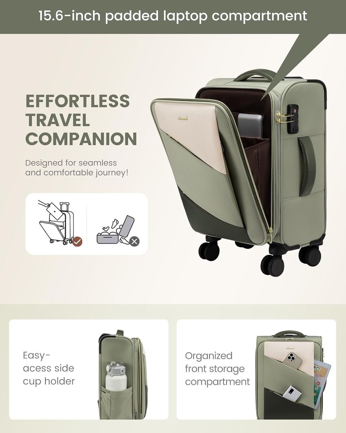 LOVEVOOK Carry On Luggage 22x14x9 Airline Approved, 20 Inch Softside Suitcases with Wheels, Lightweight Rolling Carry on Suitcase with TSA Lock, Water-Resistant Large Capacity Luggage for Women Travel