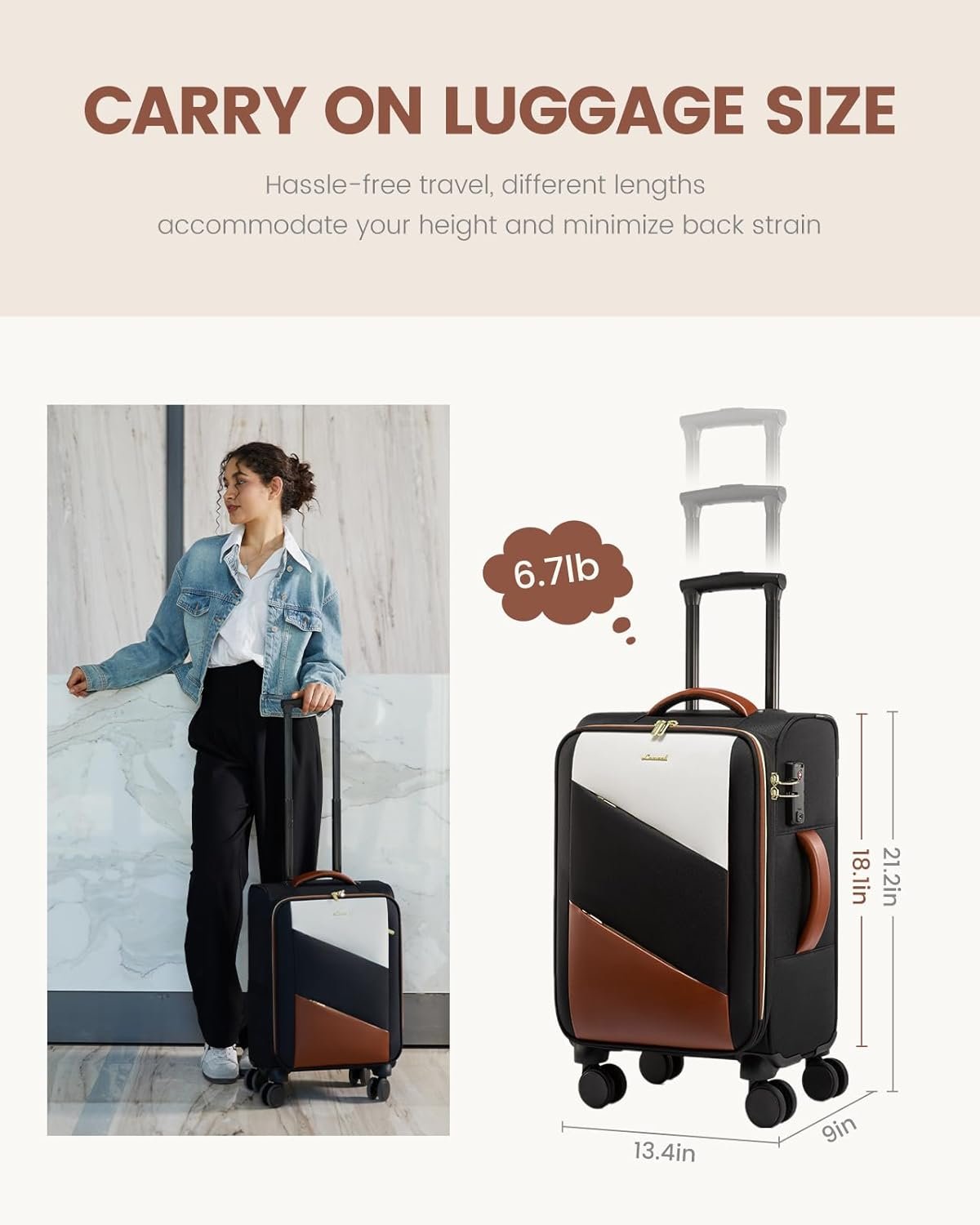 【Airline Approved Dimensions】Including wheels and handles, 20 inch carry on luggage airline approved : 21.2″ x 9″ x 13.4″, only 6.7lbs, 45L, can fit perfectly in most airline overhead bins and under the seat, meeting carry on size restrictions for most airlines.