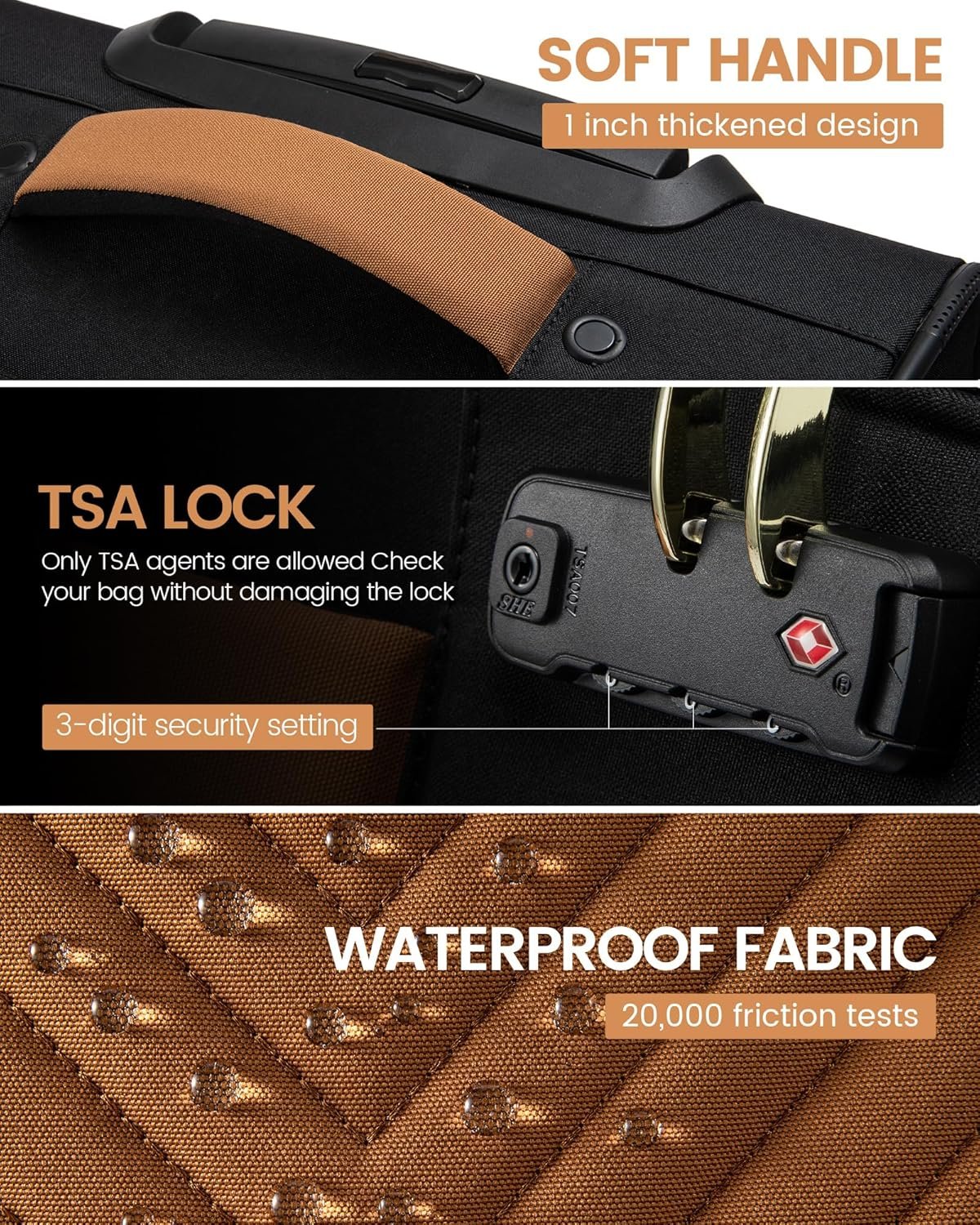 【TSA-Approved Security & Easy Rolling】This travel luggage is equipped with a TSA-approved lock for extra security and robust double spinner wheels that offer quiet, effortless rolling on various surfaces. Enjoy the perfect blend of security and convenience with this design.