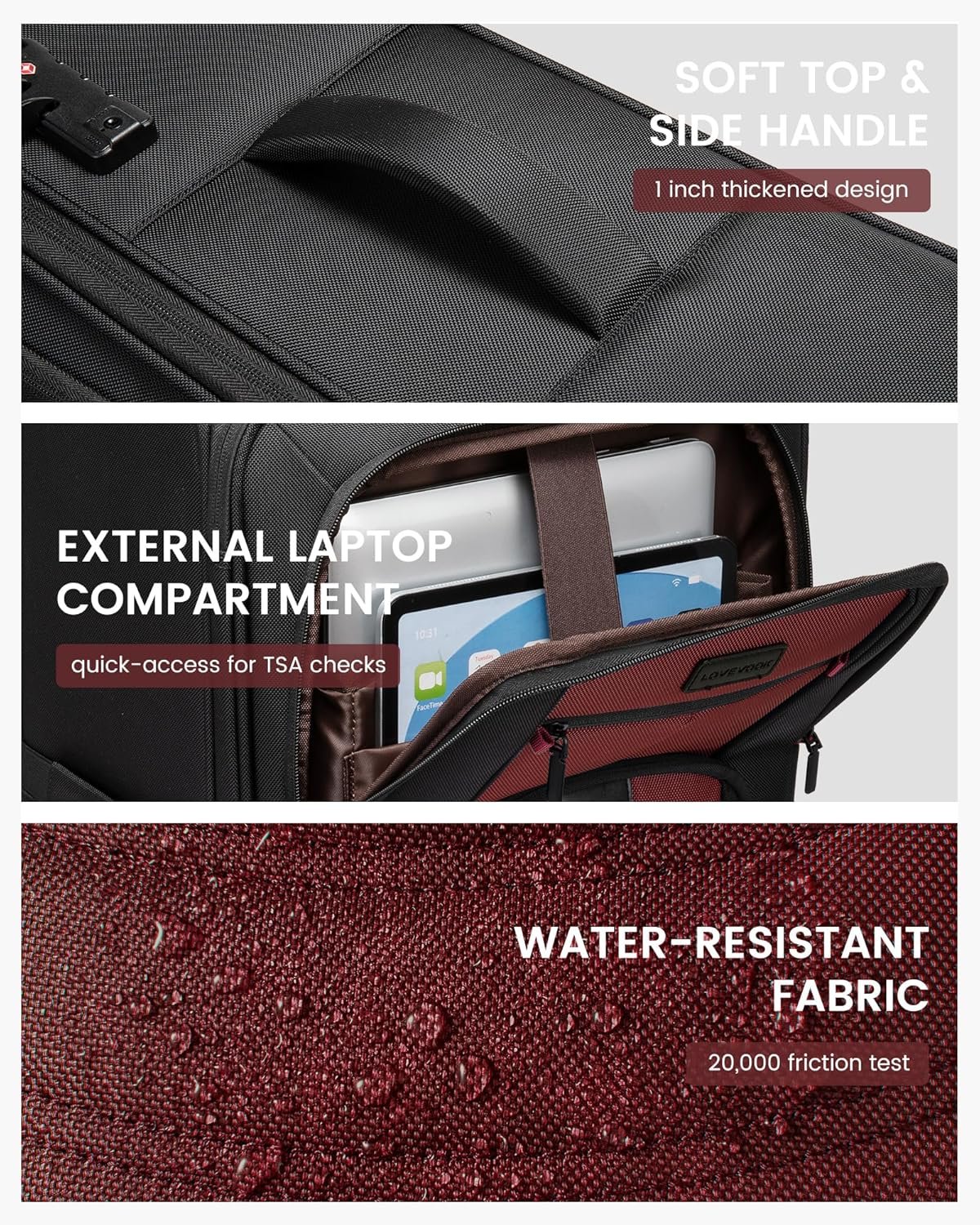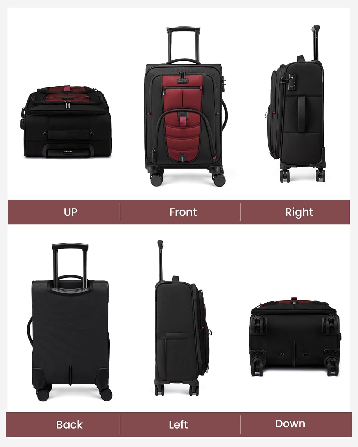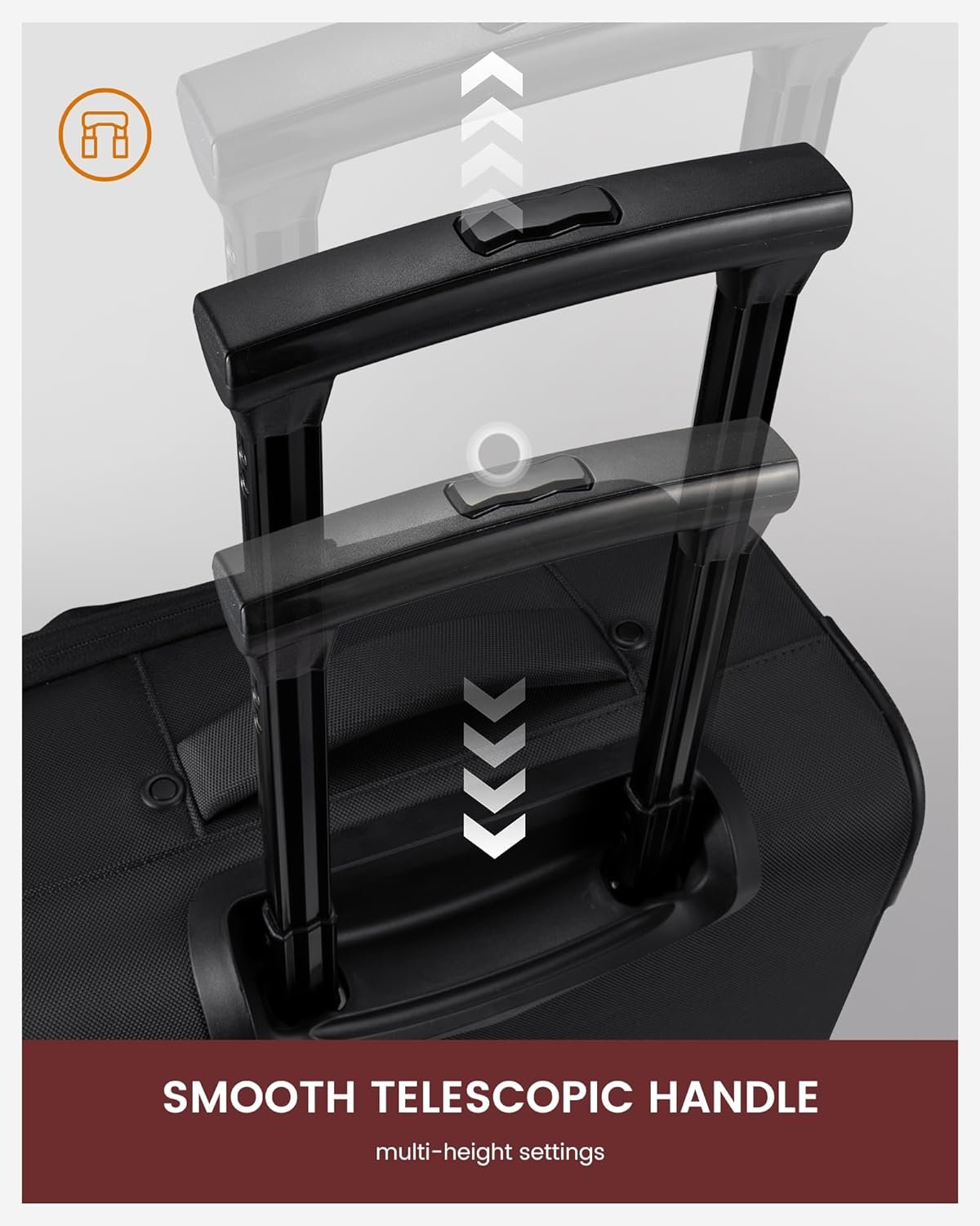 DURABILITY & SMOOTH SILENT MOBILITY: Crafted from premium water-resistant and scratch-resistant polyester, this soft carry on luggage withstands travel rigors. The 360° silent spinner wheels ensure smooth silent gliding, even when fully packed, while the adjustable handle minimizes wobble for easy mobility.