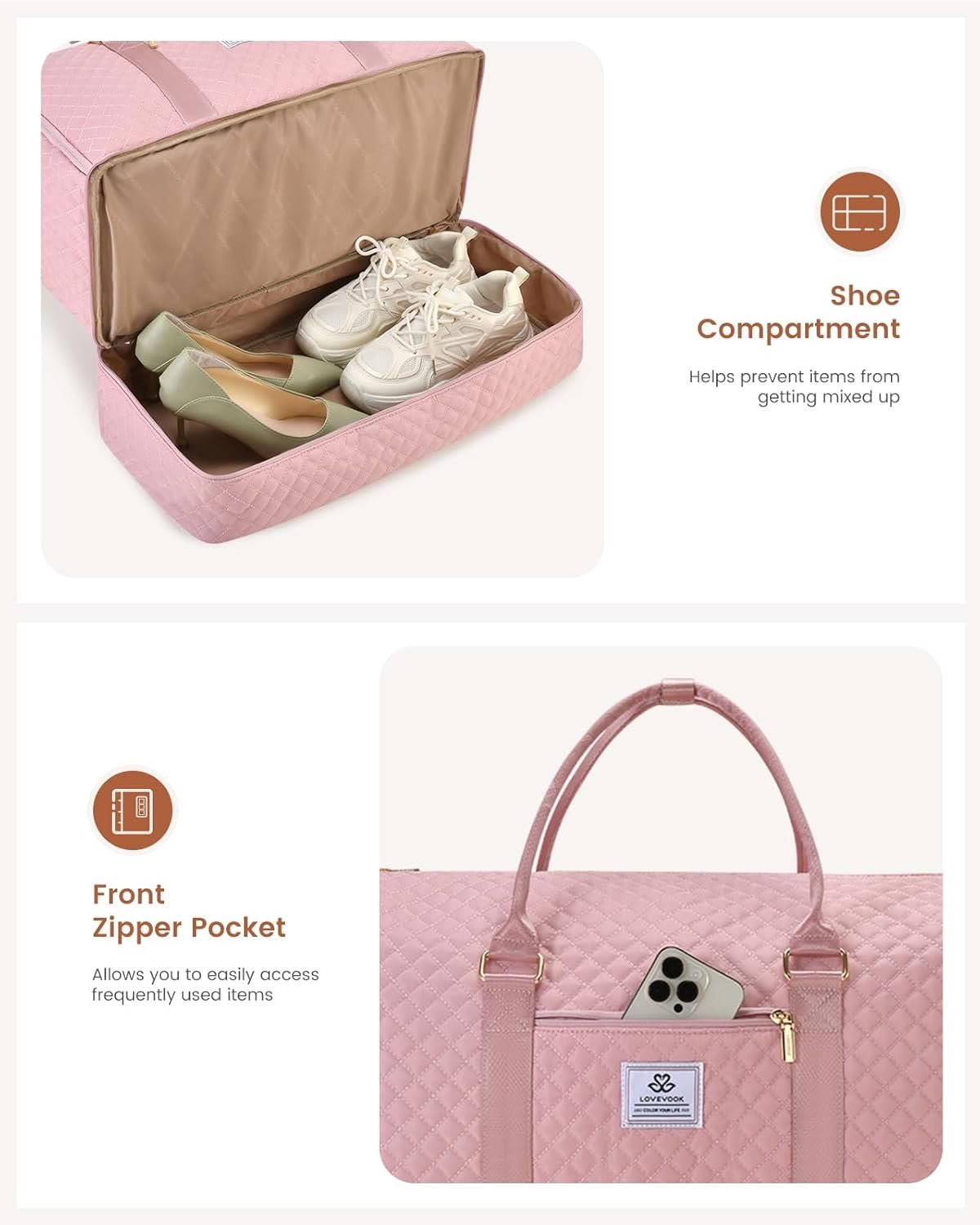 Since 2014, LOVEVOOK has been blending practical design with modern style, creating bags that empower today’s woman. Our puffer tote bags offer the perfect combination of fashion and functionality with smart compartments, adjustable cup holders, and water bottle pockets.