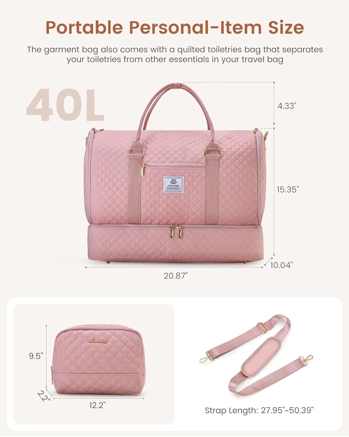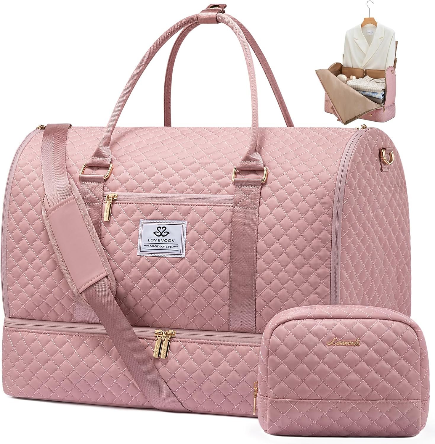 LOVEVOOK Convertible Garment Bag for Women with Shoe Pouch, Carry On Travel Duffel Bag with Toiletry Bag, 2 in 1 Hanging Suitcase Suit Bag, Waterproof Weekender Bag for Business Trip, Wedding, Pink