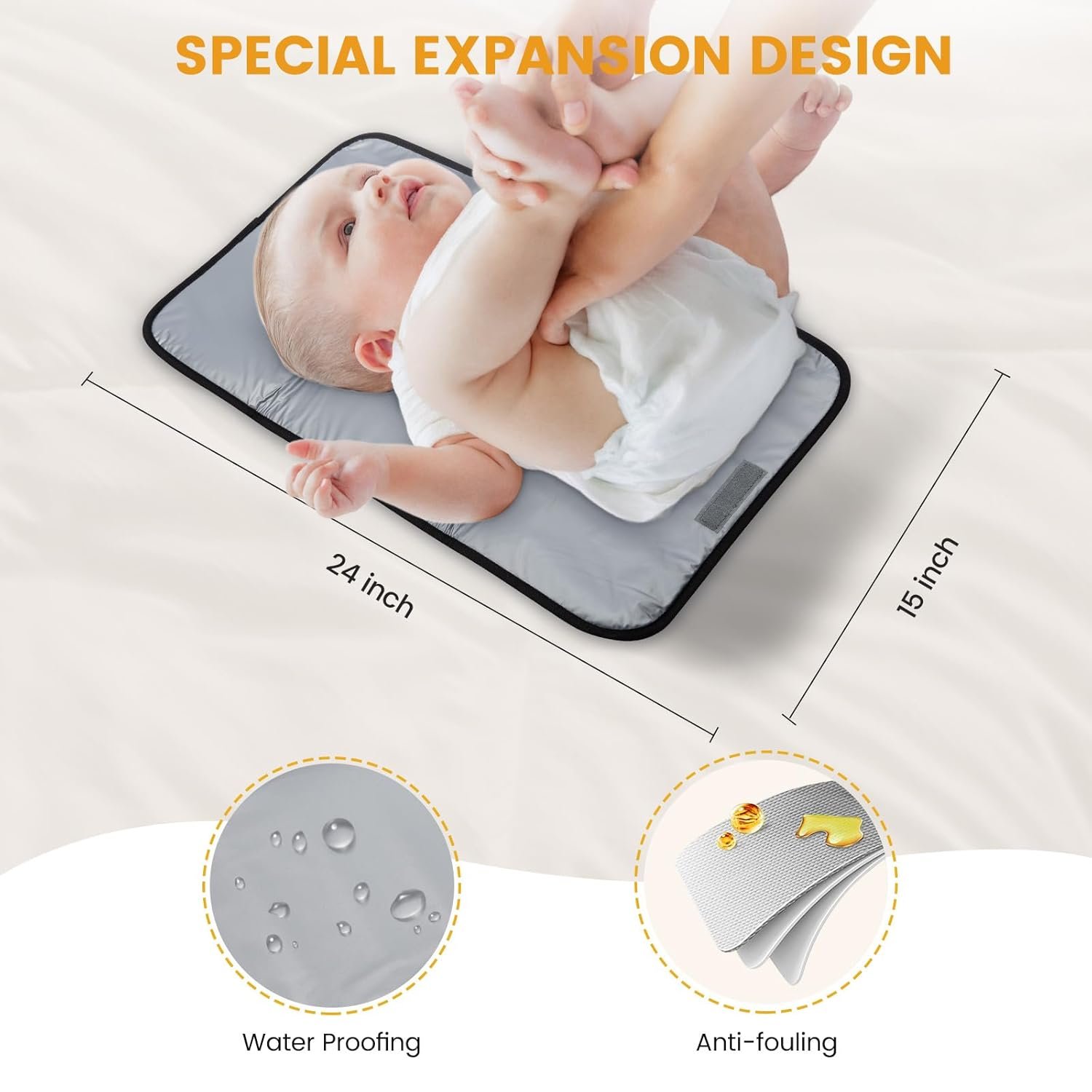 Large Capacity: Large diaper bag size:11.7L*5.7W*16.2H,Diaper pad size:24L*15W,Weight:1.98lbs.13 pockets to keep baby essentials and your belongings organized. Separate front pocket for dirty/wet clothes/diapers.