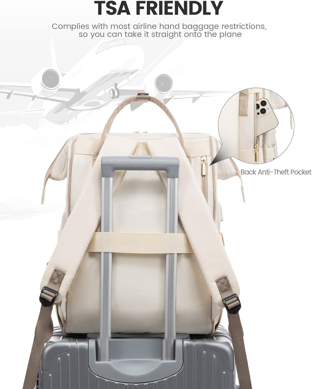 USB Charging Port Laptop Bag: Our travel backpack for women are equipped with a built-in USB charging port, easy to charge your phone when on-the-go (Not includes the power bank).