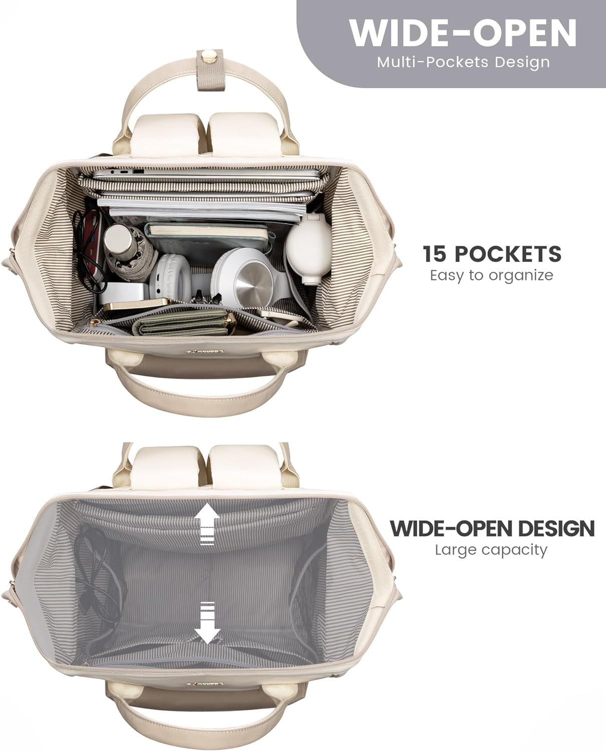 Wide Open Design Teacher Backpack Nurse Bag: The main compartment with a large open design is easy to organize and access quickly. Well-made lovevook laptop backpack for women as a practical gift for women.