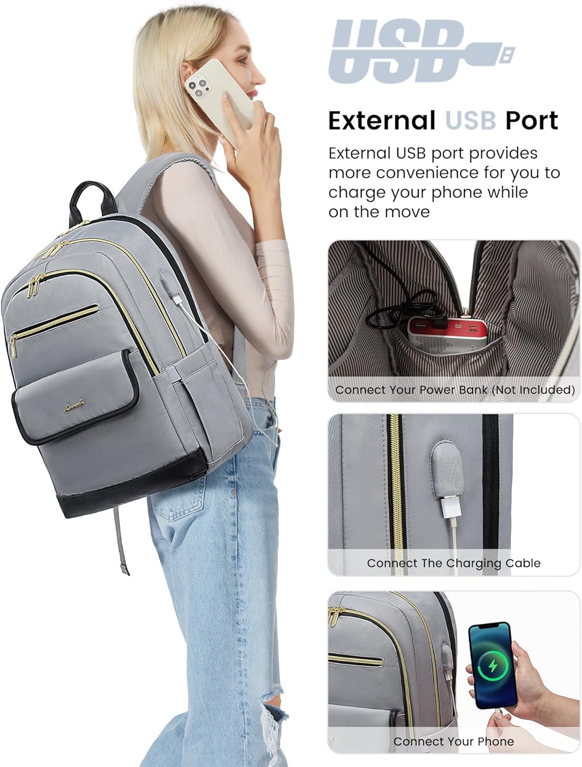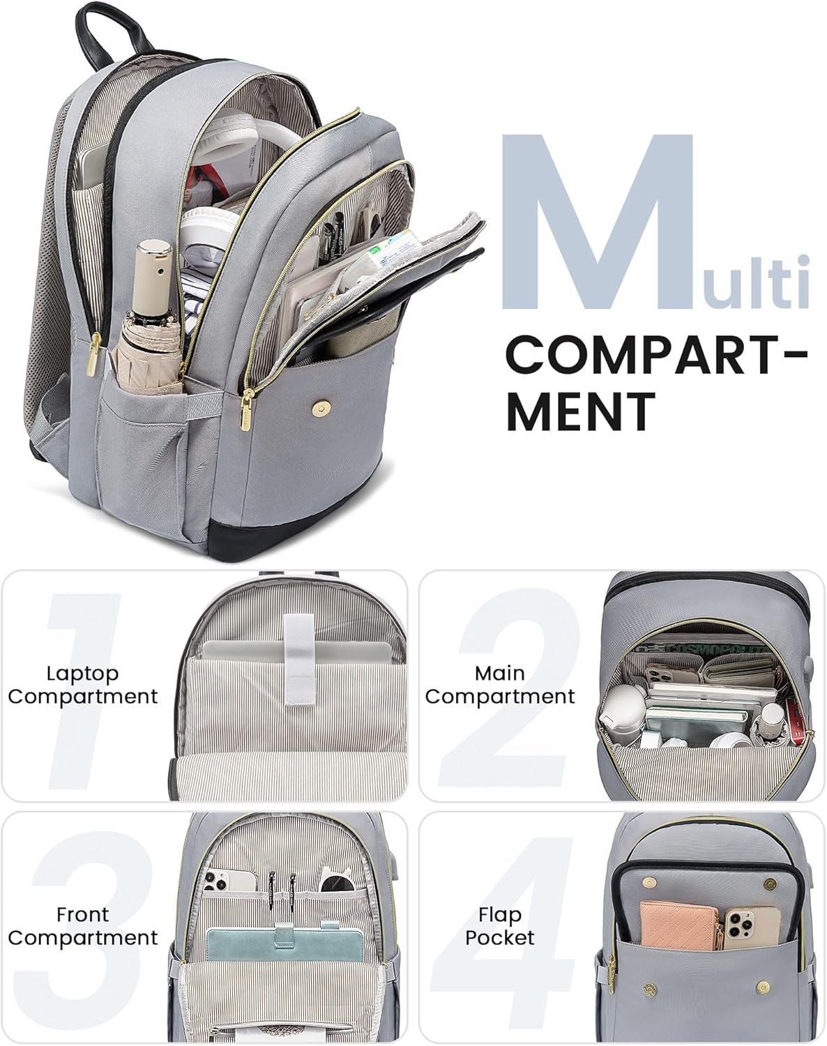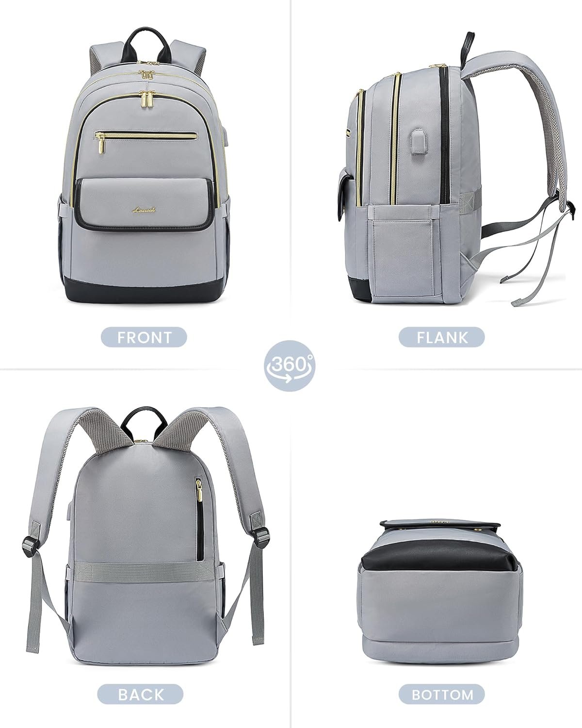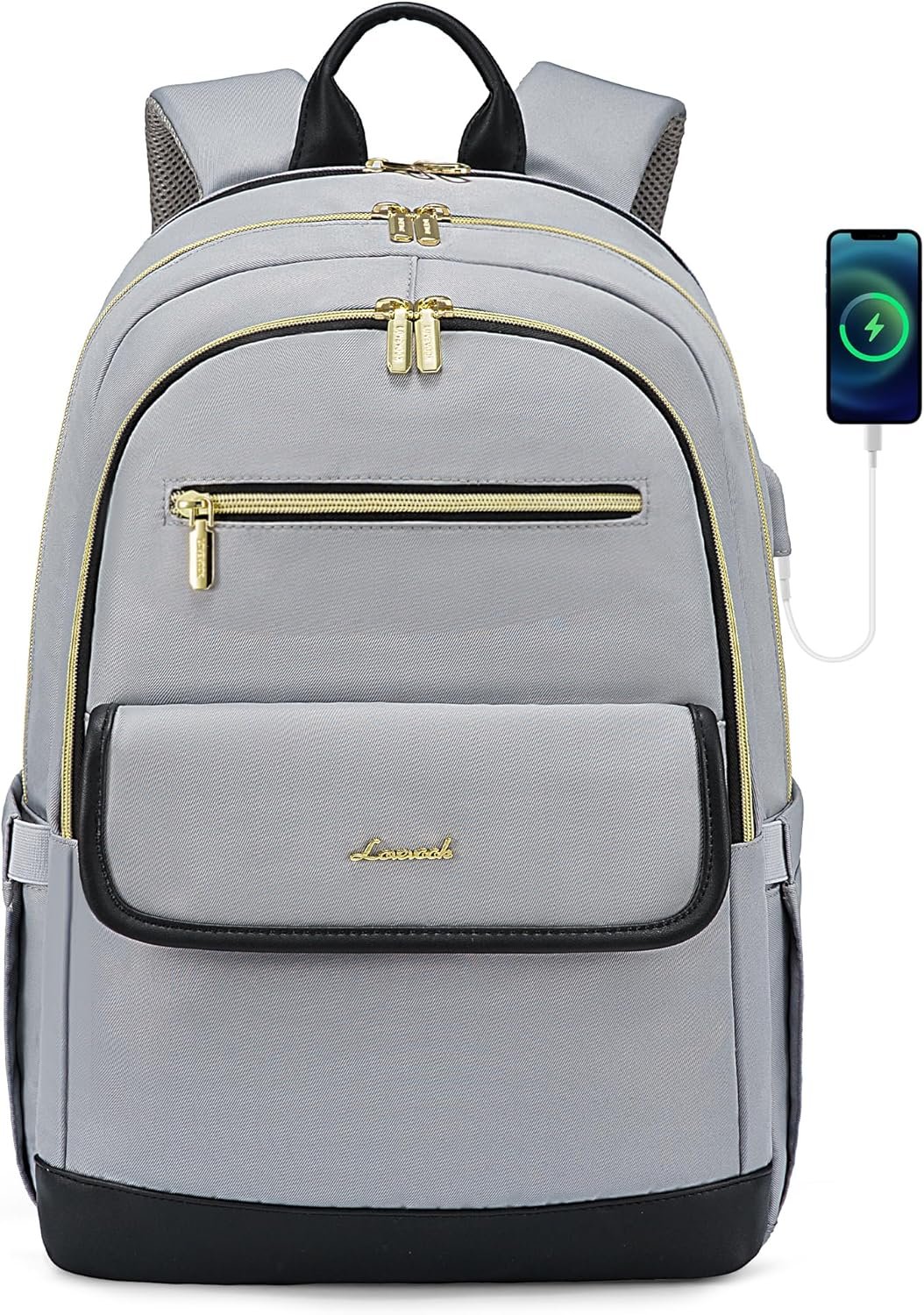 LOVEVOOK Laptop Backpack for Women,15.6 Inch Fashion Travel Backpack,Large Capacity Backpack Purse with USB,Water-resistant fits College Work Business Travel(Black & Grey)