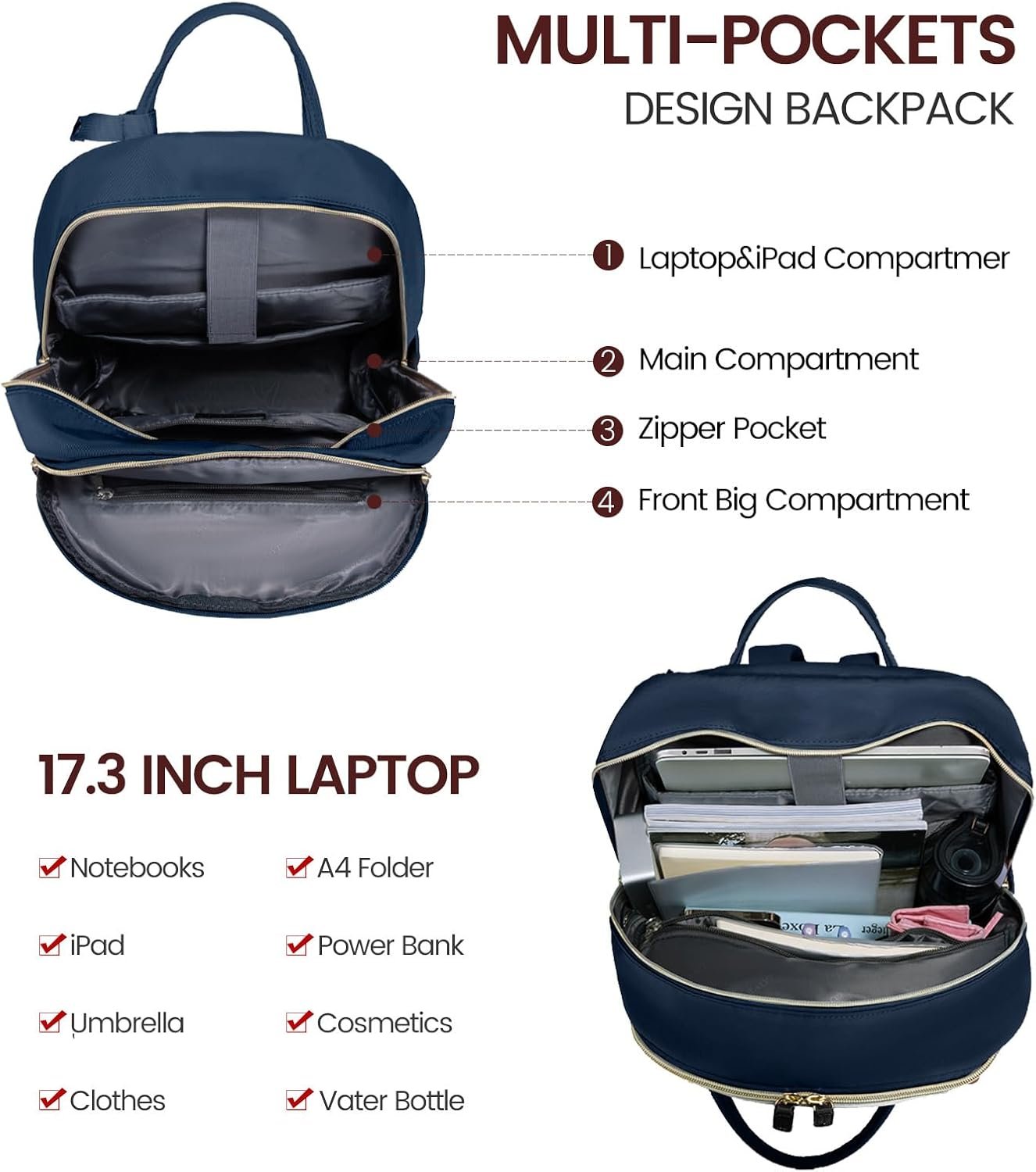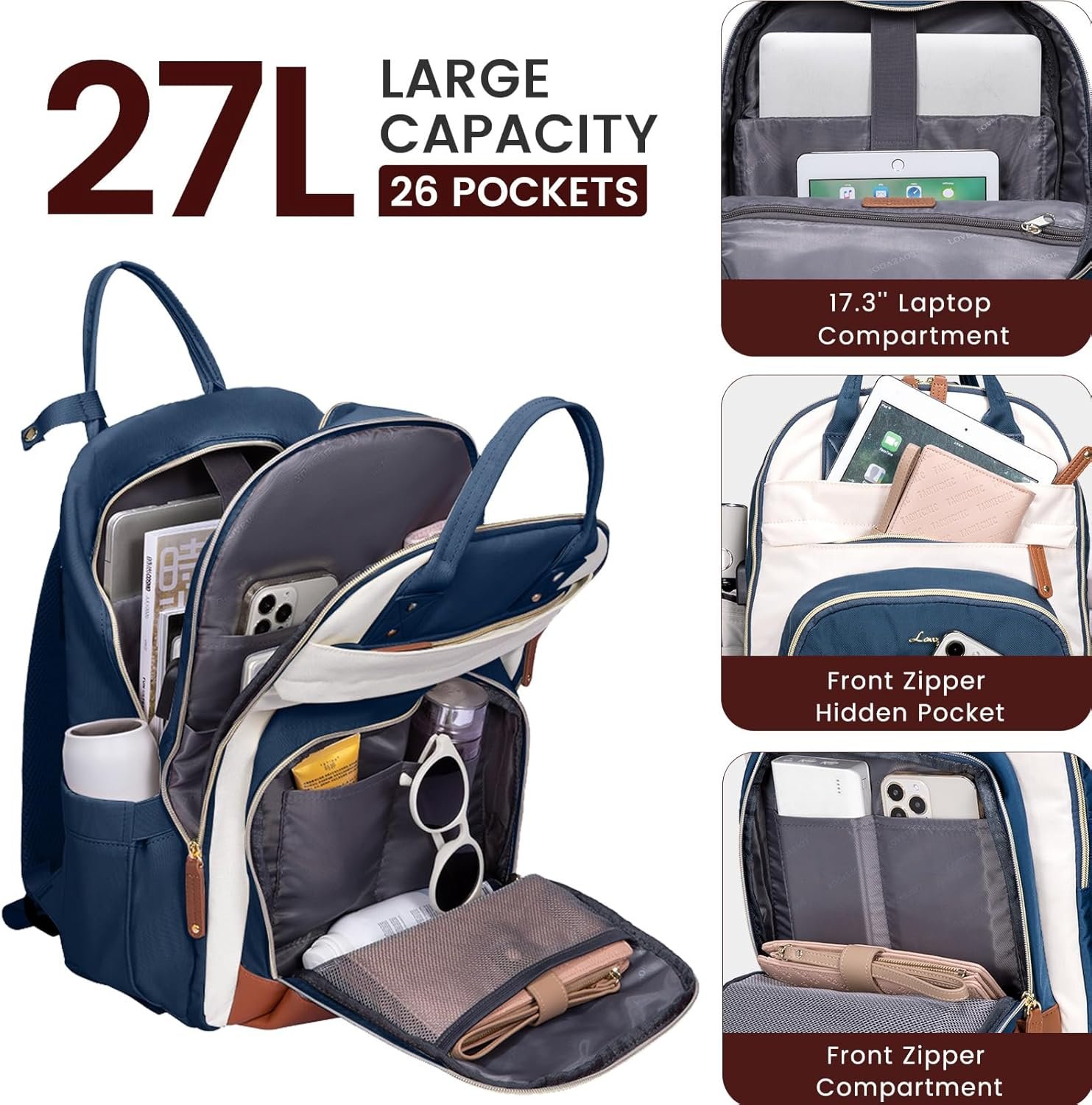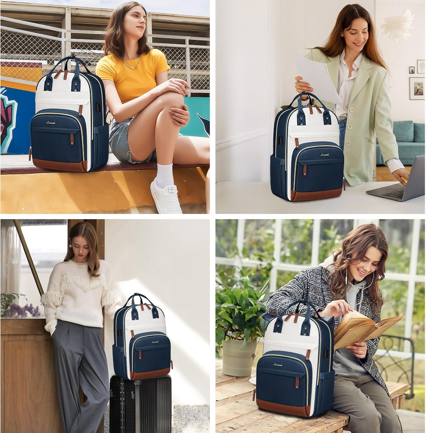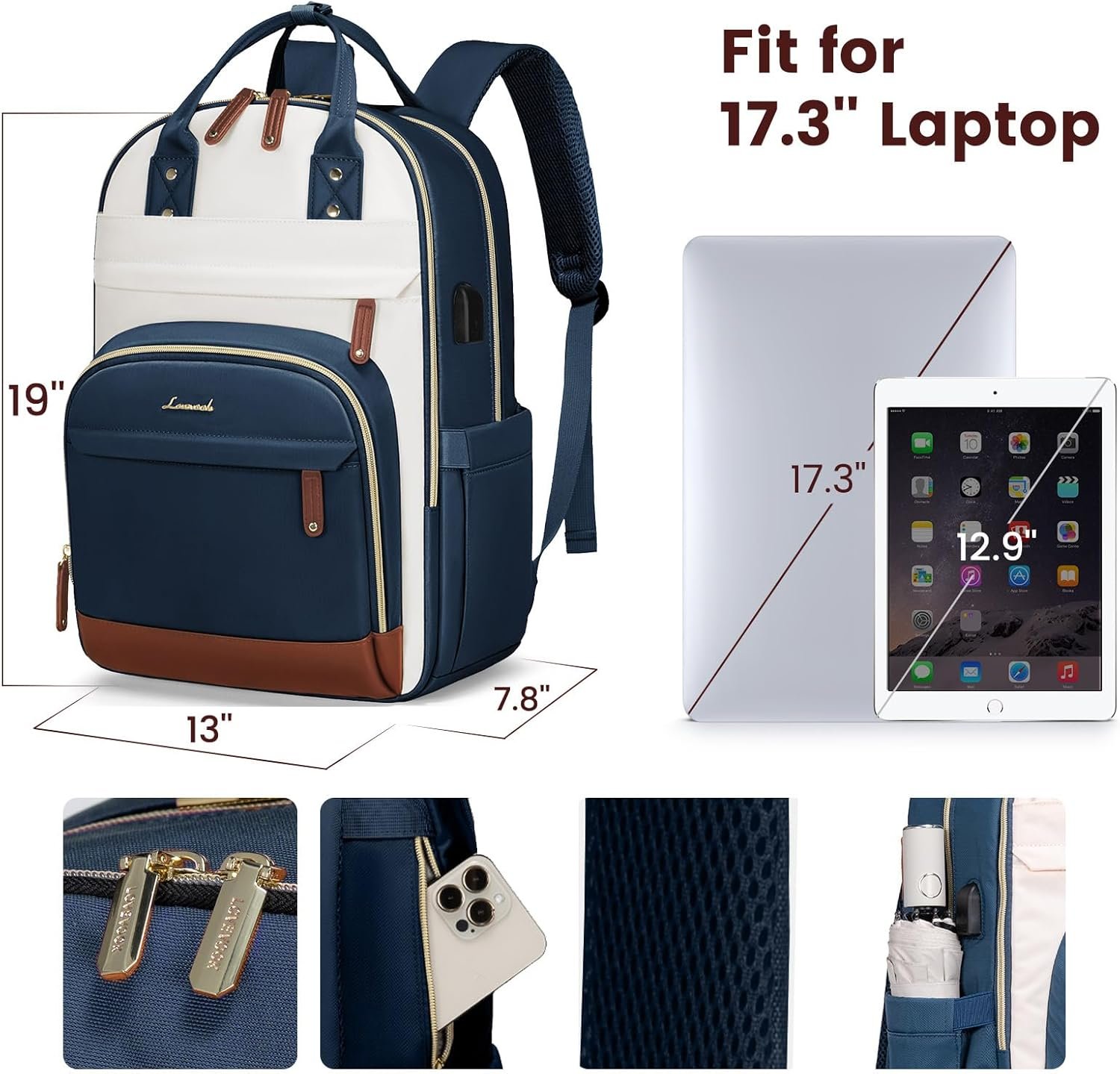 LOVEVOOK Laptop Backpack for Women,17 inch Professional Womens Travel Backpack Purse Anti-theft Laptop Computer Bag,Warterproof Work Business College Teacher Backpack Daypack,Blue-green – beige white